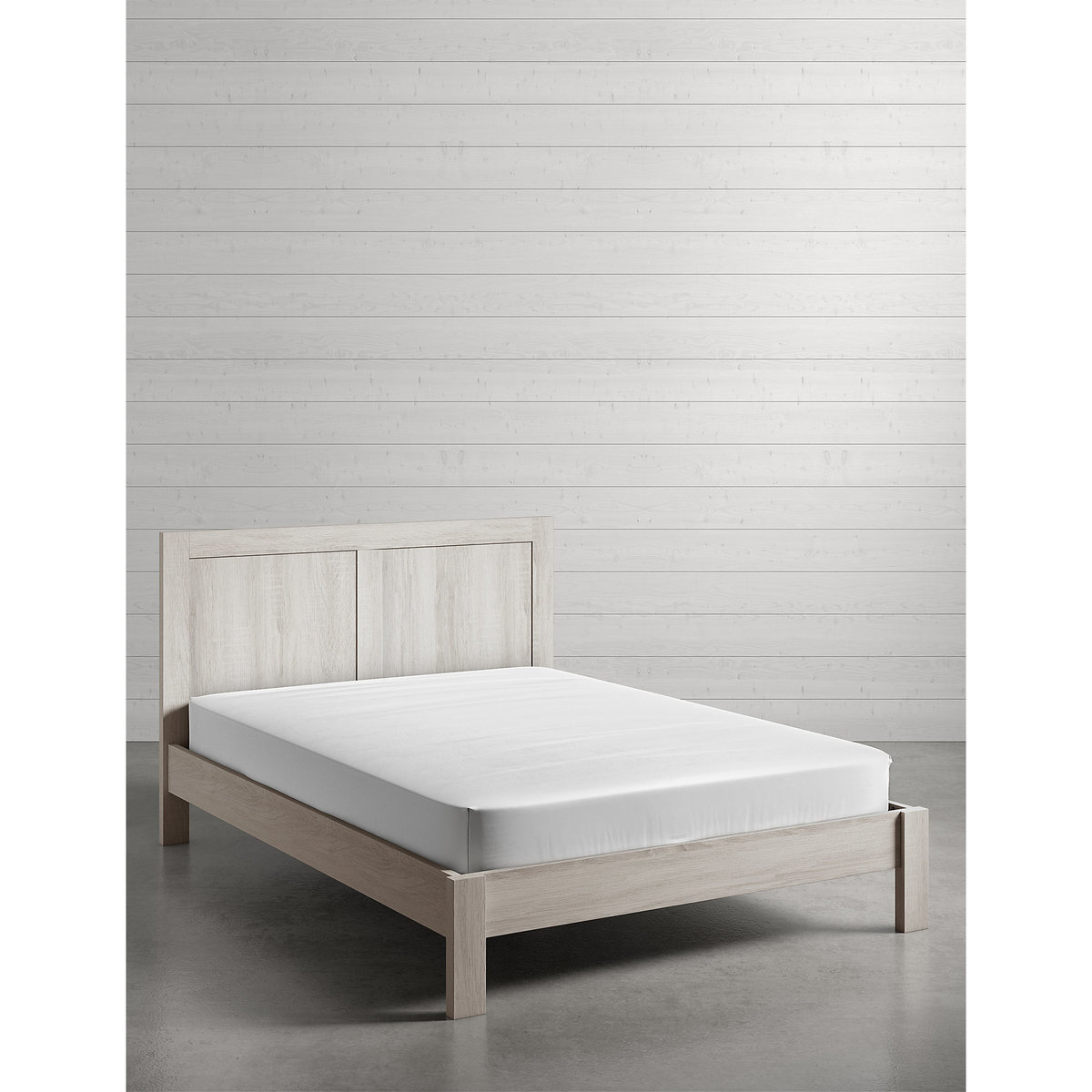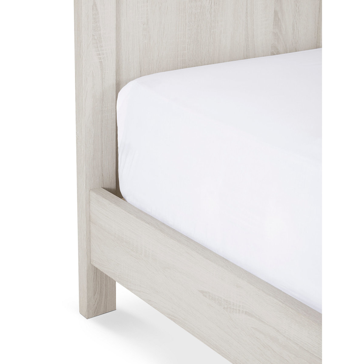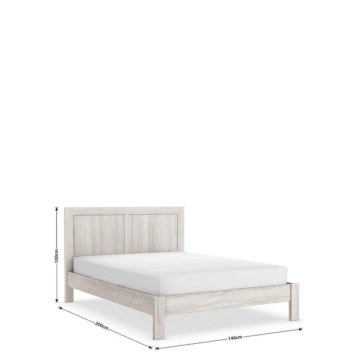 From the Arlo range, these stylish double and king size beds are beautifully designed in a contemporary white-washed wood-effect finish that will bring a touch of modern class to any bedroom. Featuring a full matching panelled headboard and simple square shaped legs, this attractive wood bed frame is not only elegant but comfortable with a sturdy wood slat base. Store extra clothes or boxes under the frame which stands 14cm high, and you\u2019ve got yourself a bed with style, comfort and practicality.