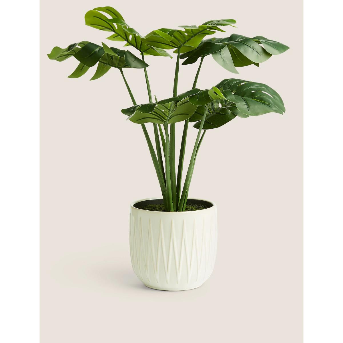 M&S Artificial Cheese Plant in Glazed Pot - Green, Green