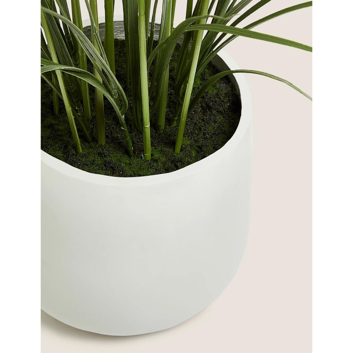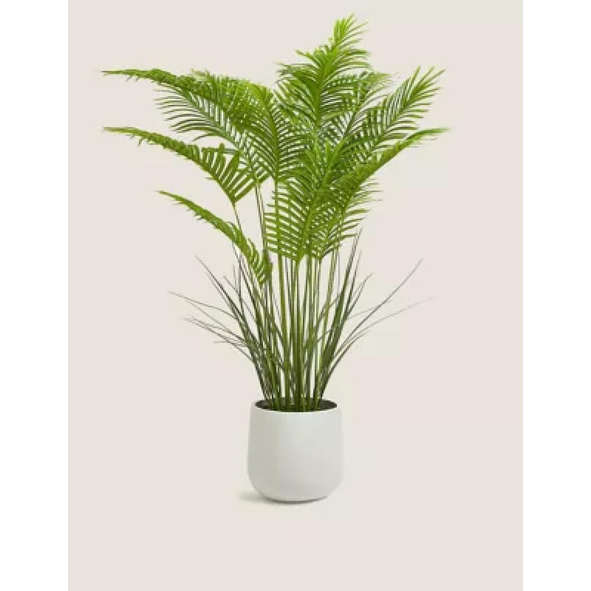 I love this floor-standing palm for bringing a touch of greenery to interiors that might otherwise lack natural elements. It works particularly well in modern, minimalist spaces or as an accent in a neutral sitting room, adding height and visual interest. Practical styling tips include placing it in a sleek floor vase or alongside a console table for a natural yet polished look. It’s low-maintenance, making it ideal for busy households or commercial settings, and its vibrant green shade injects colour and freshness without the need for watering or sunlight.