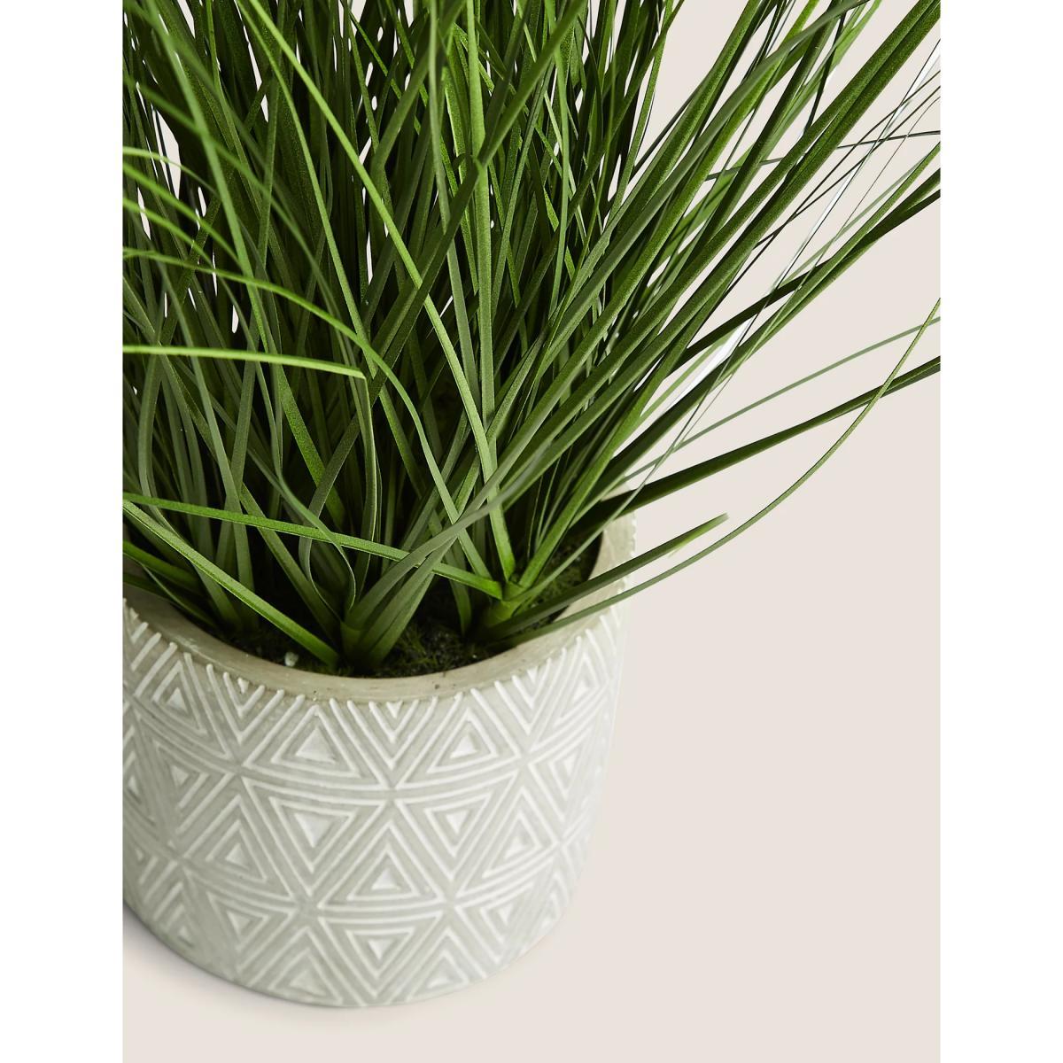 A fuss-free way to refresh your home's greenery, this artificial grass plant in a mossy bed brings a touch of colour and character to any room. It's presented in a cylindrical concrete pot decorated with a geometric pattern that's equally eye-catching.