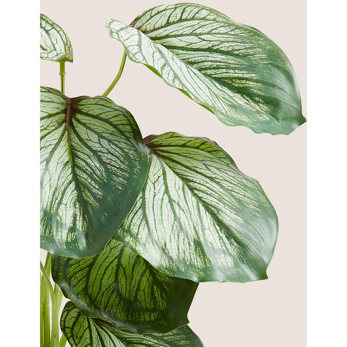 Bring the outdoors into your home with this artificial wild caladium house plant. Its large leaves will evoke a sense of natural energy in your living space. This faux plant comes in a minimal black pot.