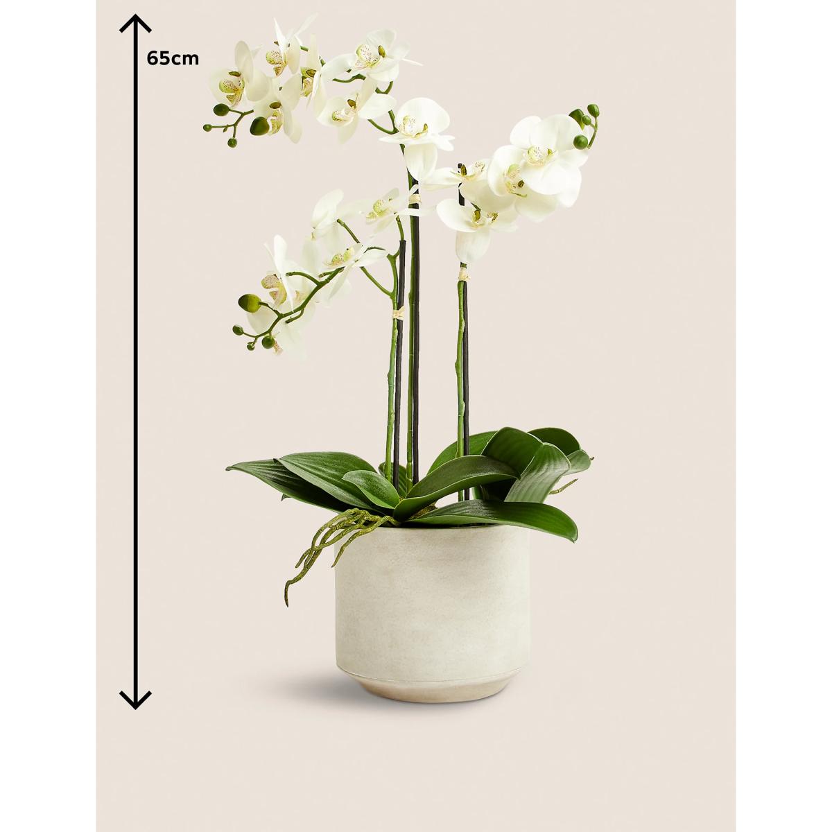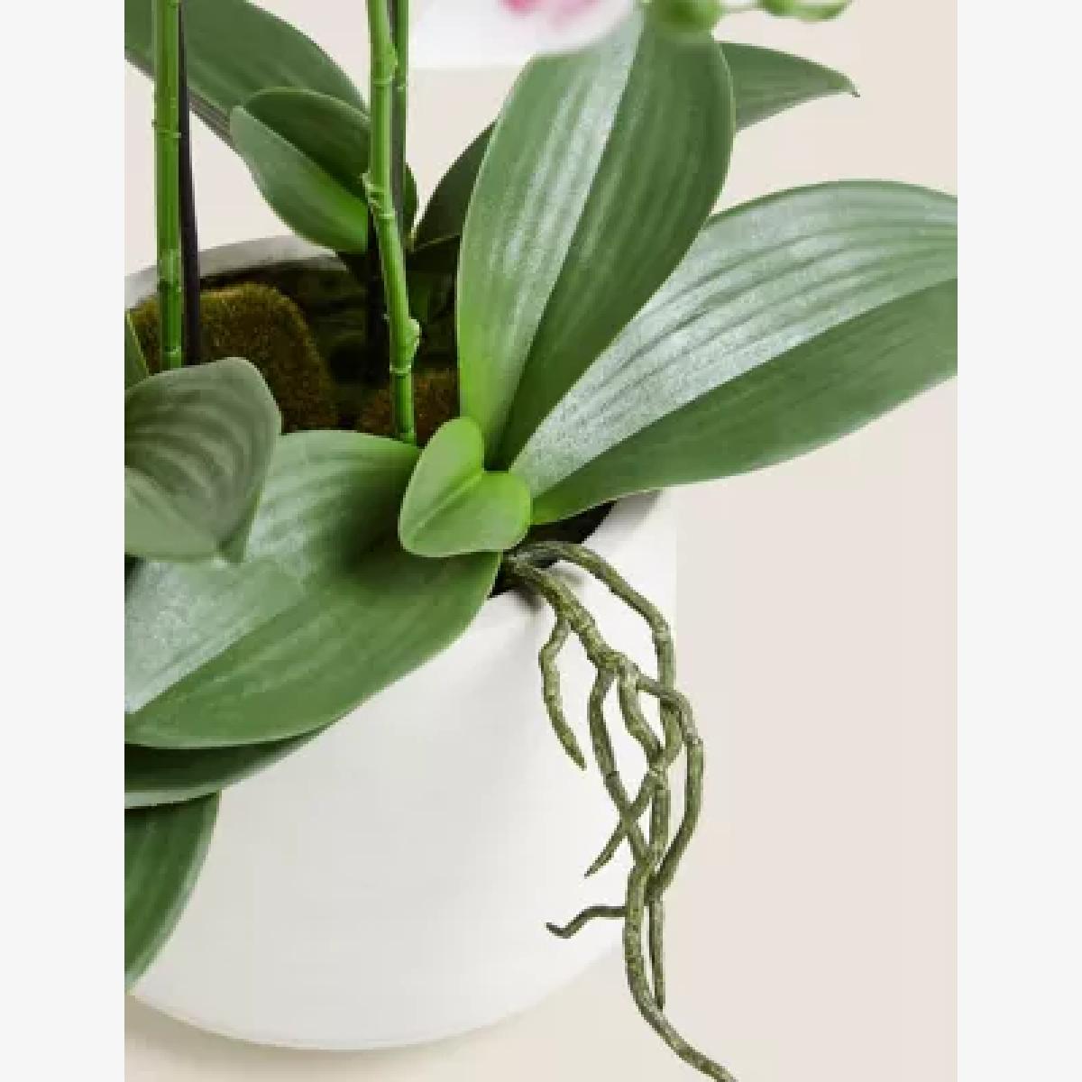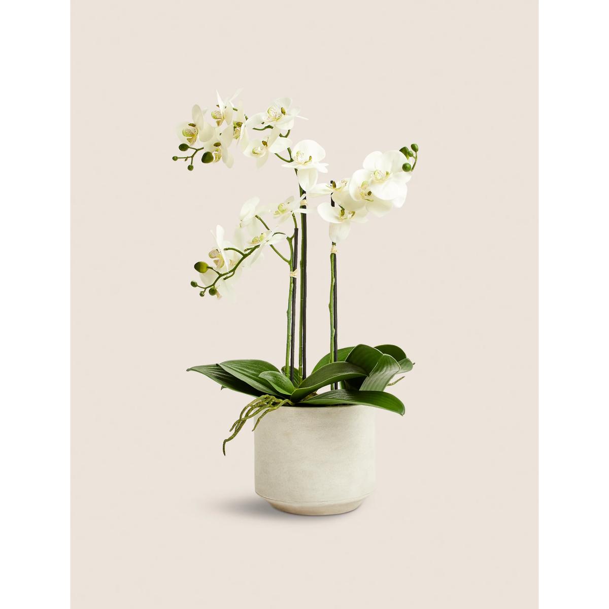 Freshen up your space with this artificial orchid. This piece features intricate detailing on the flower head as well as tendrils and moss – all presented in a neutral-coloured pot.