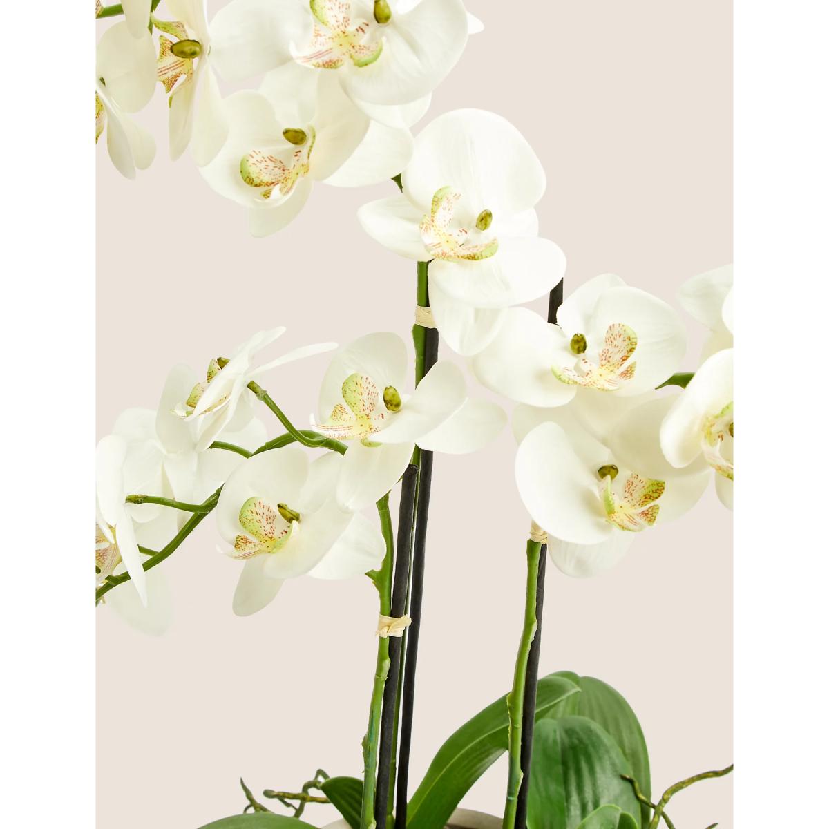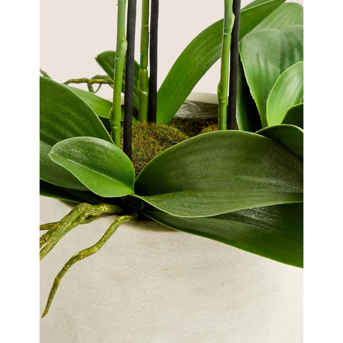 Freshen up your space with this artificial orchid. This piece features intricate detailing on the flower head as well as tendrils and moss – all presented in a neutral-coloured pot.