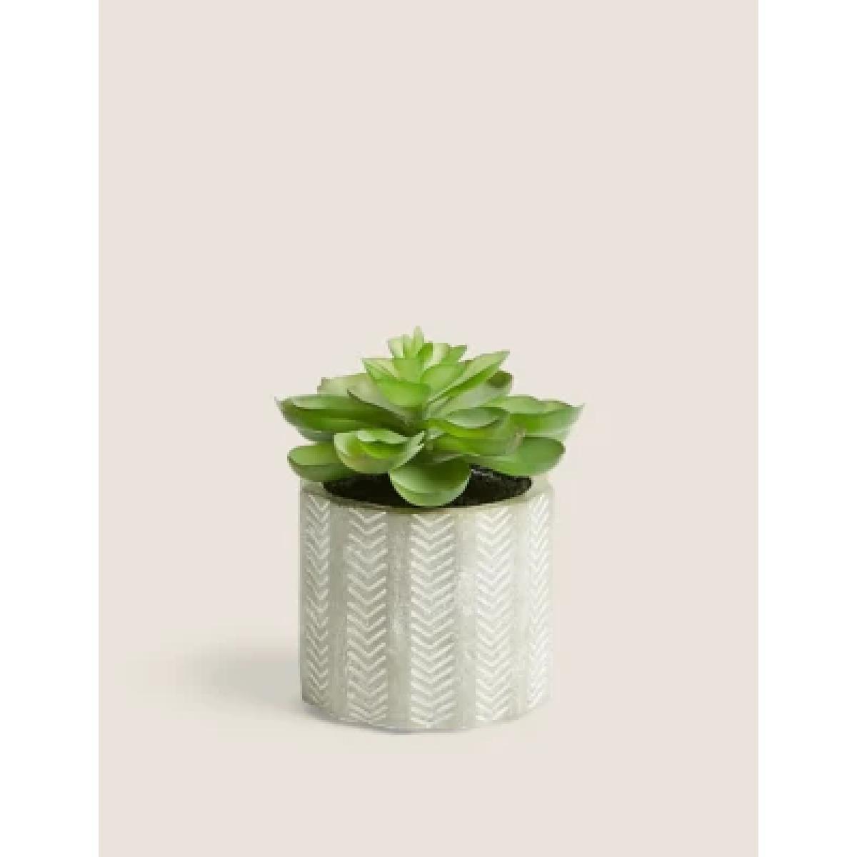 M&S Artificial Mini Echeveria in Concrete Pot - Green, Green