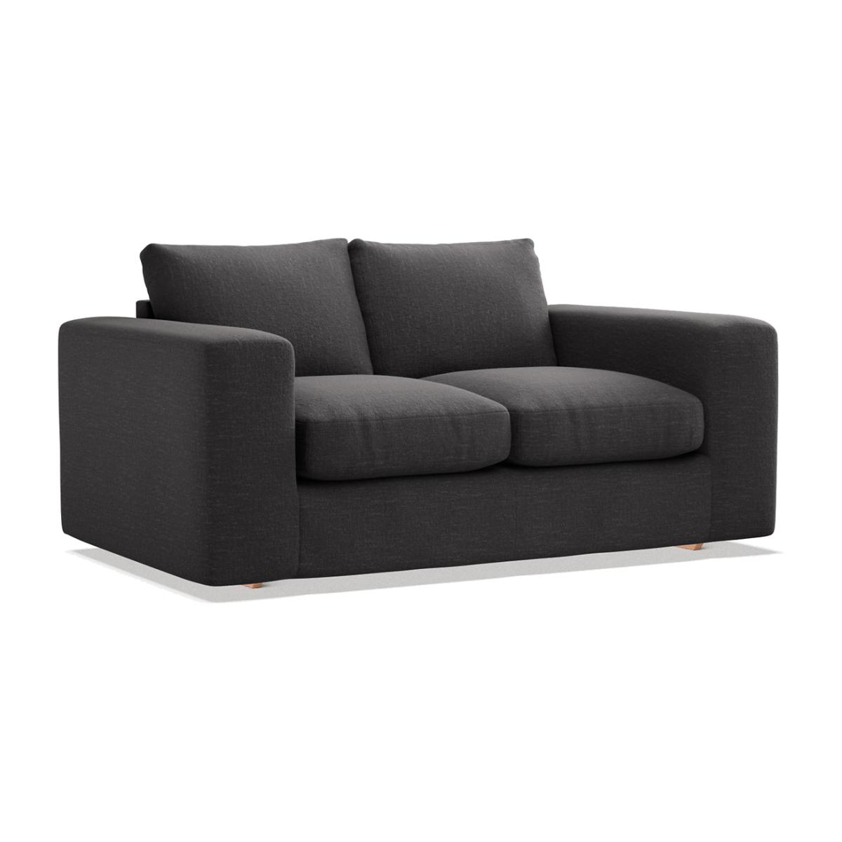 I love this sofa for its clean lines and versatile silhouette, making it a great anchor piece in both contemporary and minimalist interiors. Its neutral dark grey fabric offers flexibility for styling with colourful cushions, throws, or textured accessories to add personality. It works well in smaller living spaces thanks to its compact two-seater profile, but can also be paired with a larger statement piece or corner sofa for a layered look. Practical styling tips include layering with cosy textiles, such as patterned or tactile cushions, and anchoring the space with a soft rug. Overall, it’s a smart, stylish choice that balances comfort with understated elegance.
