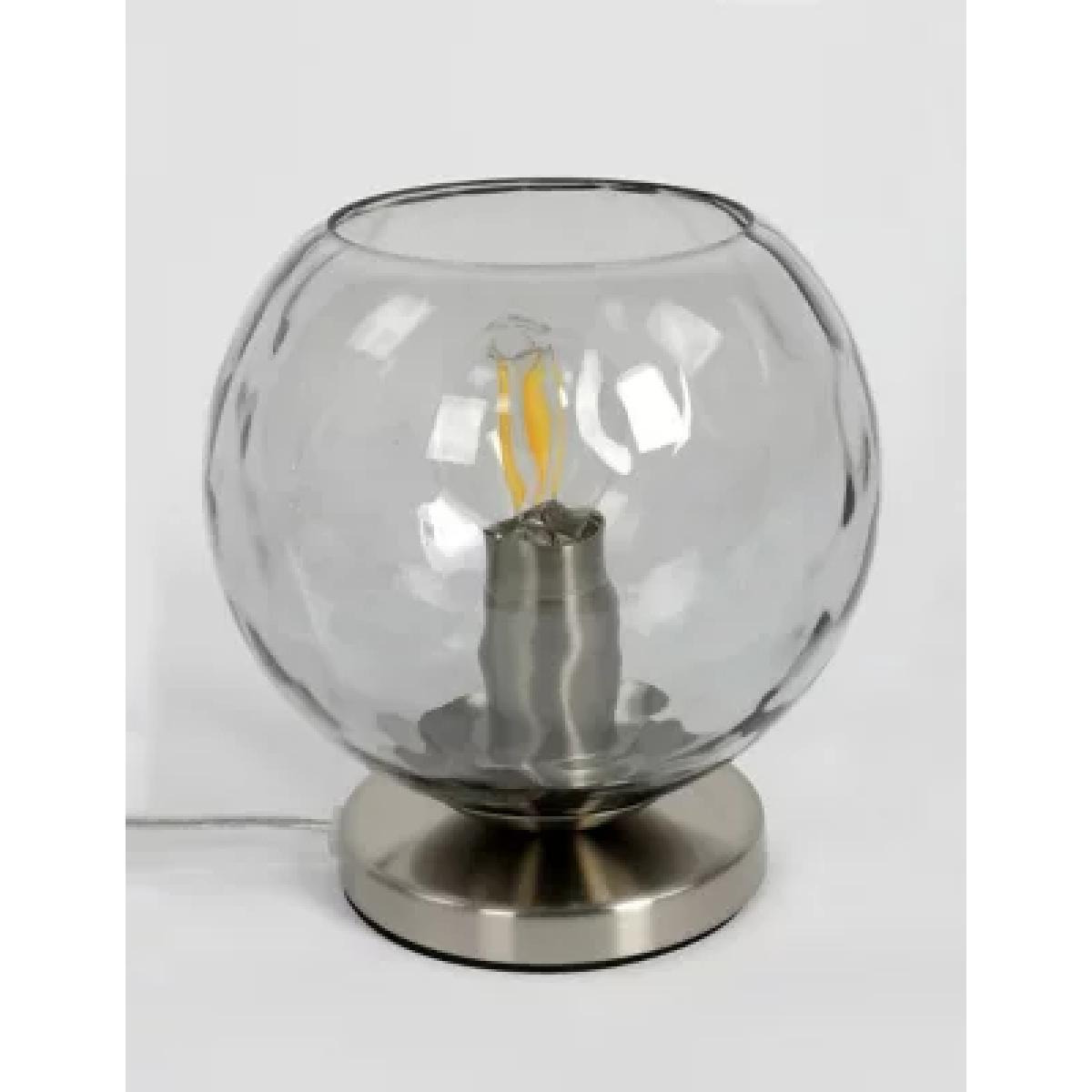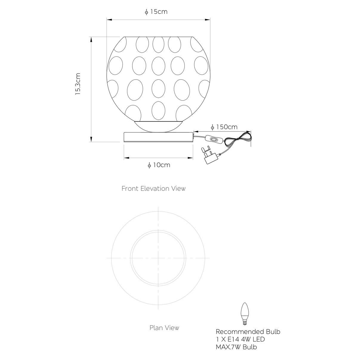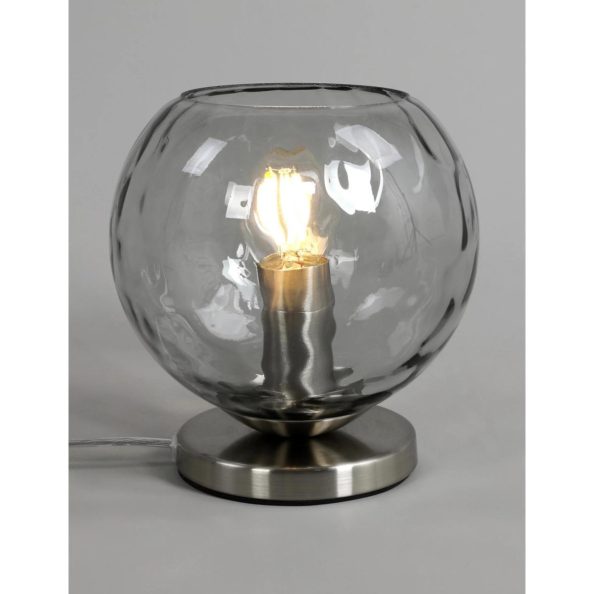 Bring a true conversation piece to your home with this funky table lamp. Made to complement casual interiors, this piece is crafted from smoked textured glass, and finished with satin nickel metalwork and a clear plastic cable. It can be paired with the matching ceiling pendant light for a coordinated look.