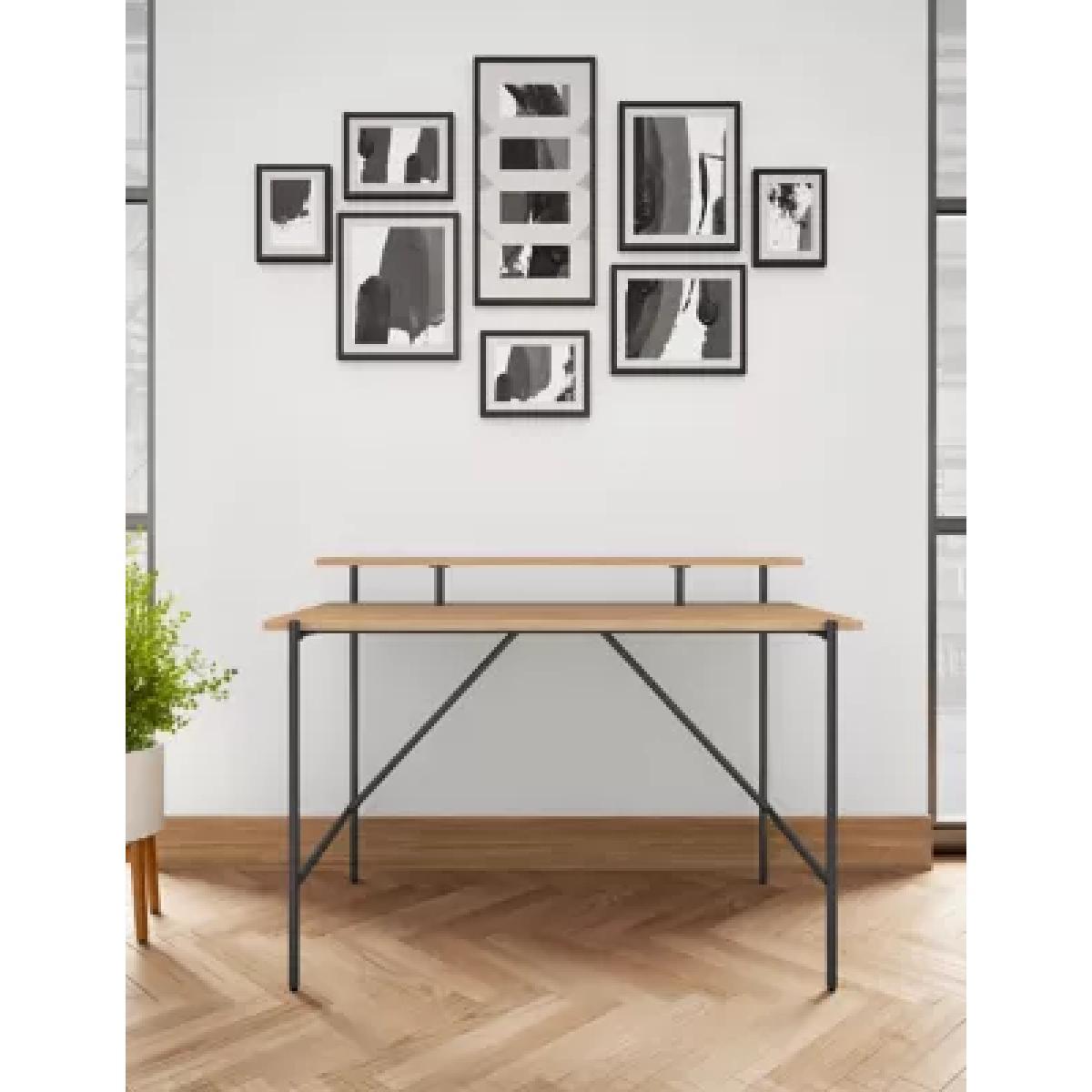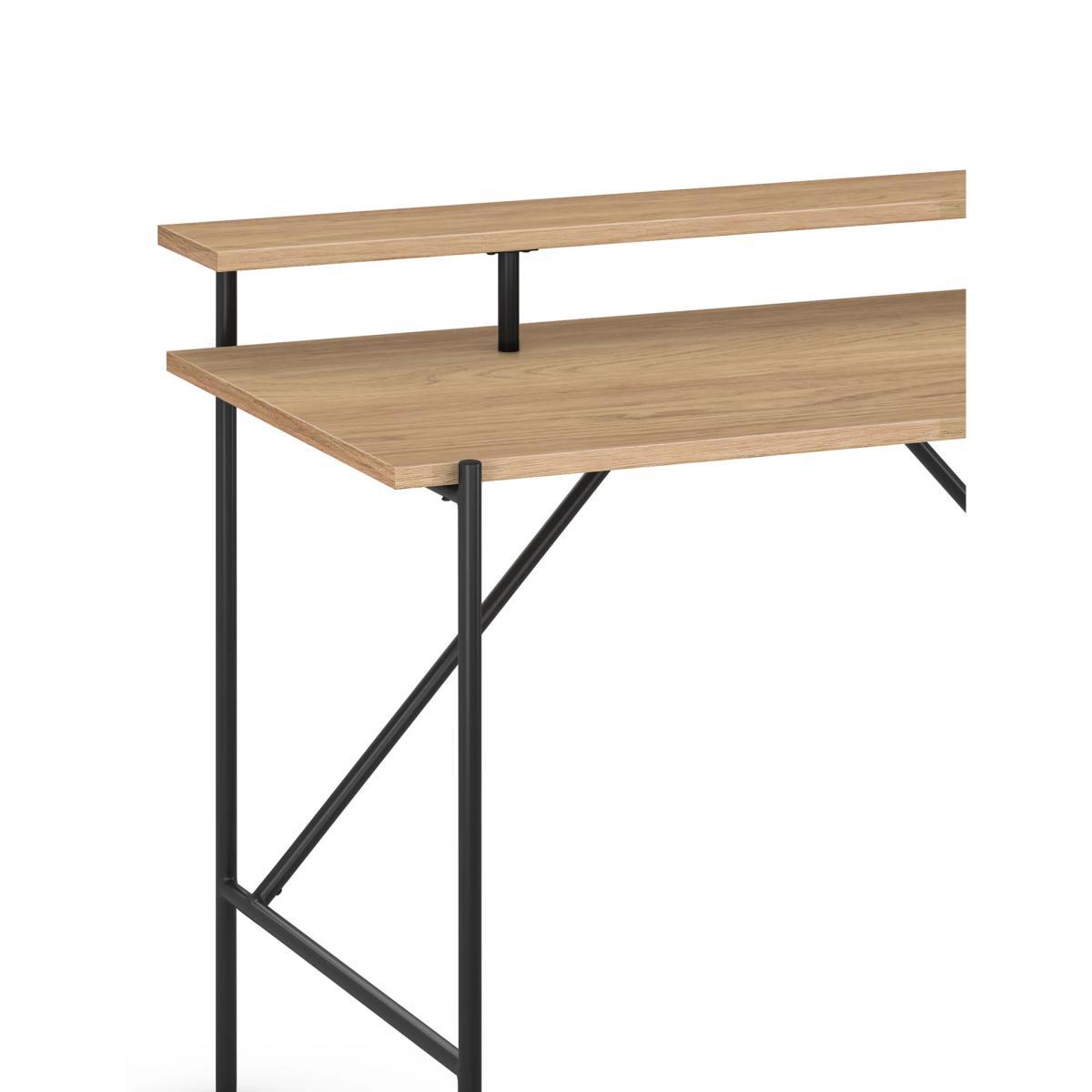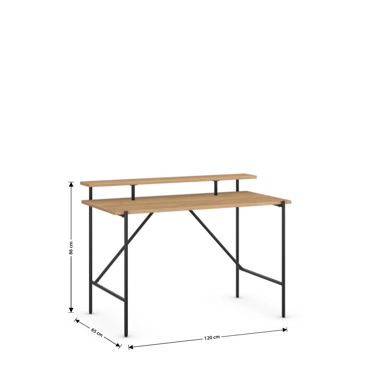 Part of our classic Austin range, this industrial desk is designed to make a practical and stylish addition to home offices. Crafted from real oak veneer and textured metalwork, its sleek, minimalist design complements any decor. The raised desktop plinth provides vital storage space for admin essentials, too. Matching Austin collection items are available.