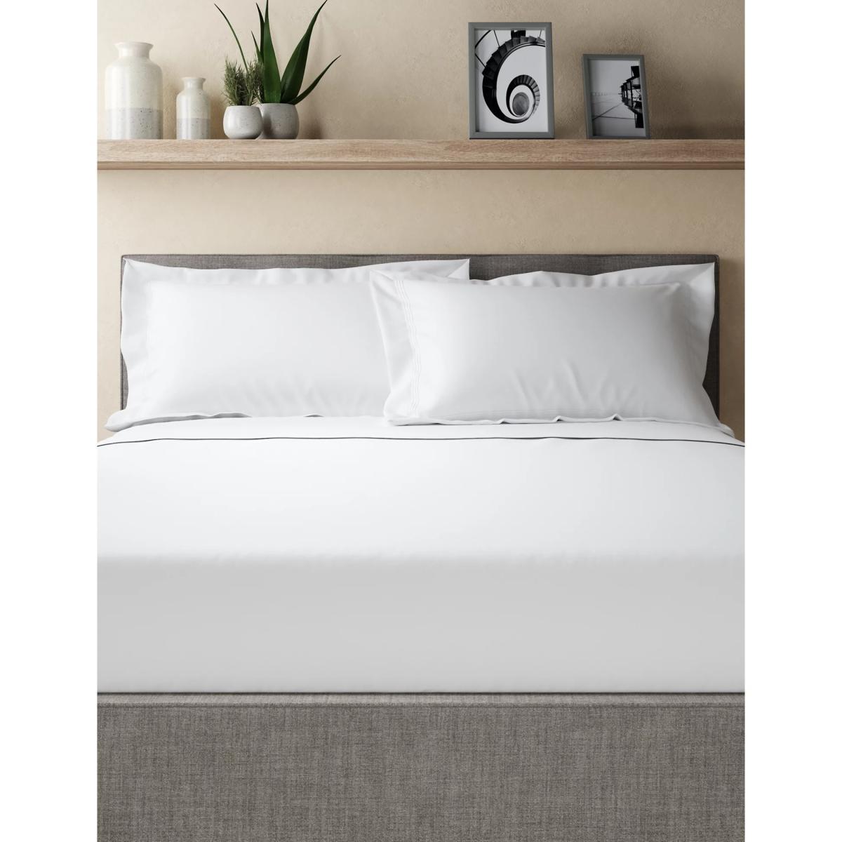 M&S Autograph Supima® Cotton 750 Thread Count King Size Pillowcase - White, White,Light Grey