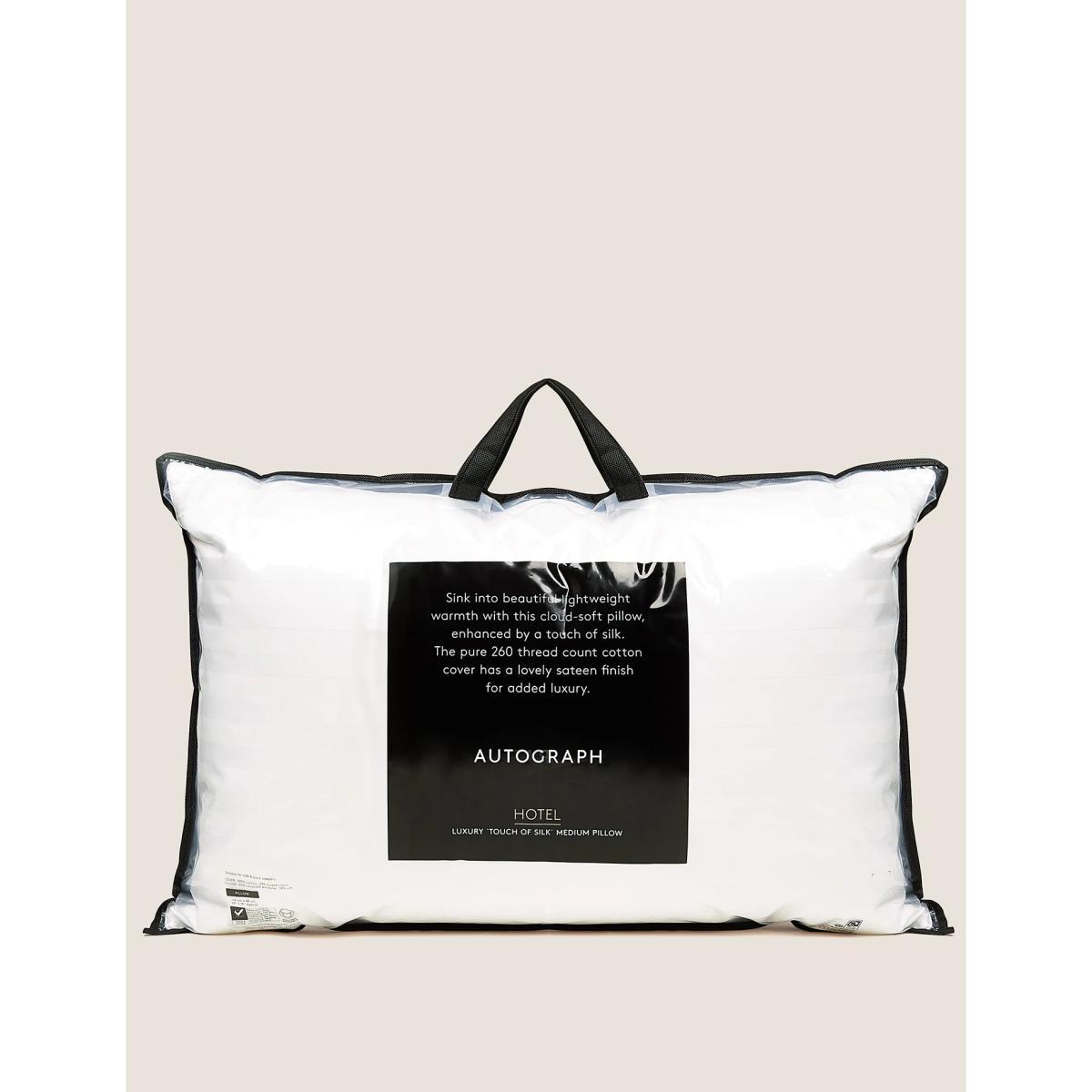 M&S Autograph Touch of Silk Medium Pillow - White, White