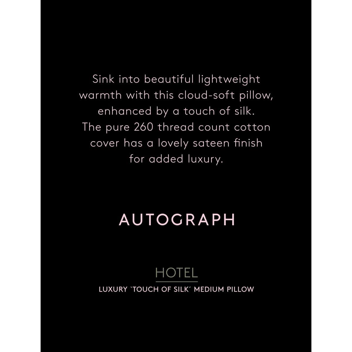 This premium medium support pillow from our Autograph range is made with a hint of silk for a lightweight, cloud-soft feeling. The pure 260 thread-count cotton cover has a luxurious sateen finish.