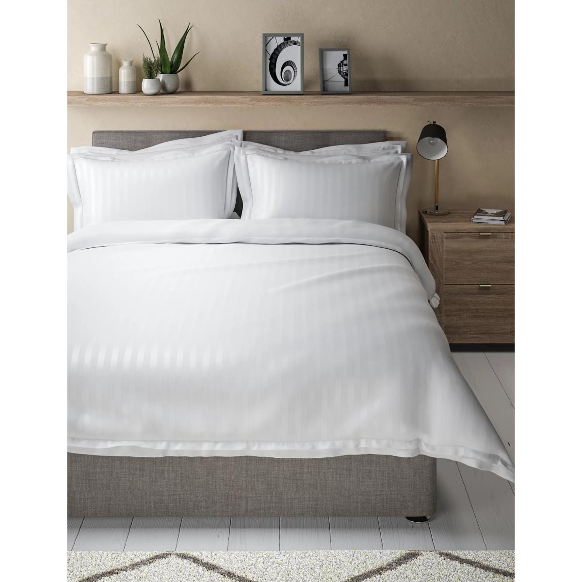 Shake up your bedroom décor with this double cuff bedding set. A stylish, modern addition to any bedroom, subtle stripes are woven into this set, completed with a luxurious sateen finish to add a splash of splendour. The pure cotton fabric is soft and sumptuous to the touch, ensuring a truly cosy night of sleep, this striped bed set is a go-to in bedroom décor. Consisting of a duvet cover and a matching pillowcase cover, pair this double cuff bed set with the matching fitted sheet from Autograph to complete the look.
