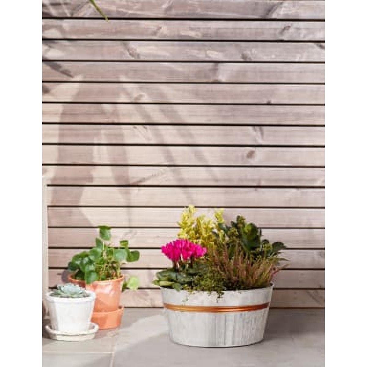 I love this tin planter for its versatile, vintage-inspired look that instantly adds charm to any space. It works particularly well in kitchens, sunrooms, or outdoor spaces where a relaxed, rustic vibe is desired. Its neutral tones combined with subtle detailing make it easy to style alongside both modern and traditional interiors. Practical tips include trailing plants or small flowering varieties to soften its industrial feel, or grouping it with other natural textures for a cosy, curated display. It’s a great piece for bringing a touch of greenery into smaller spaces without overwhelming the surroundings.