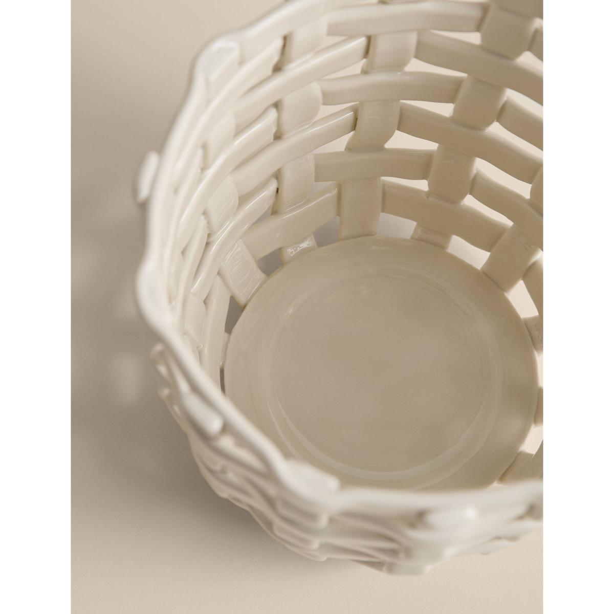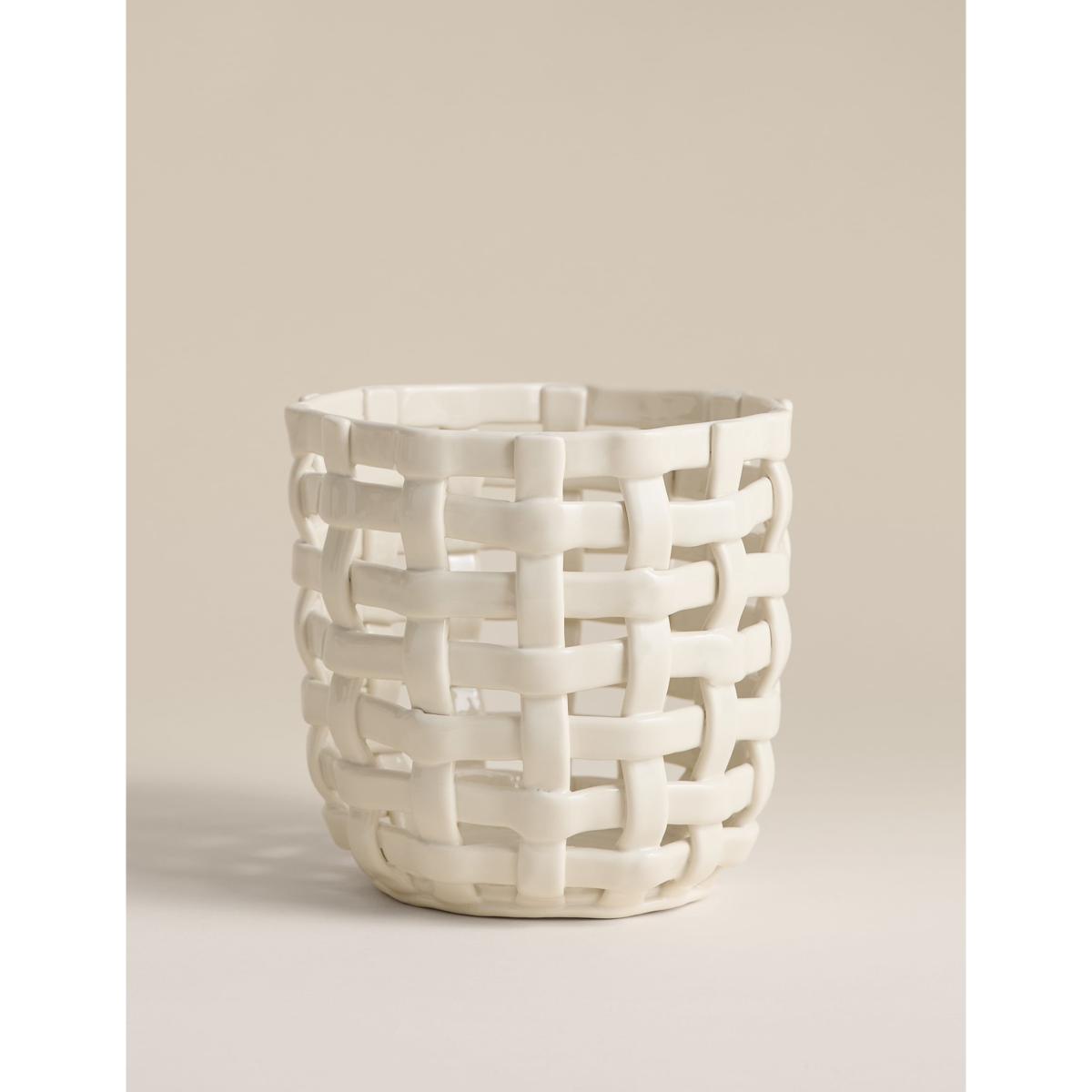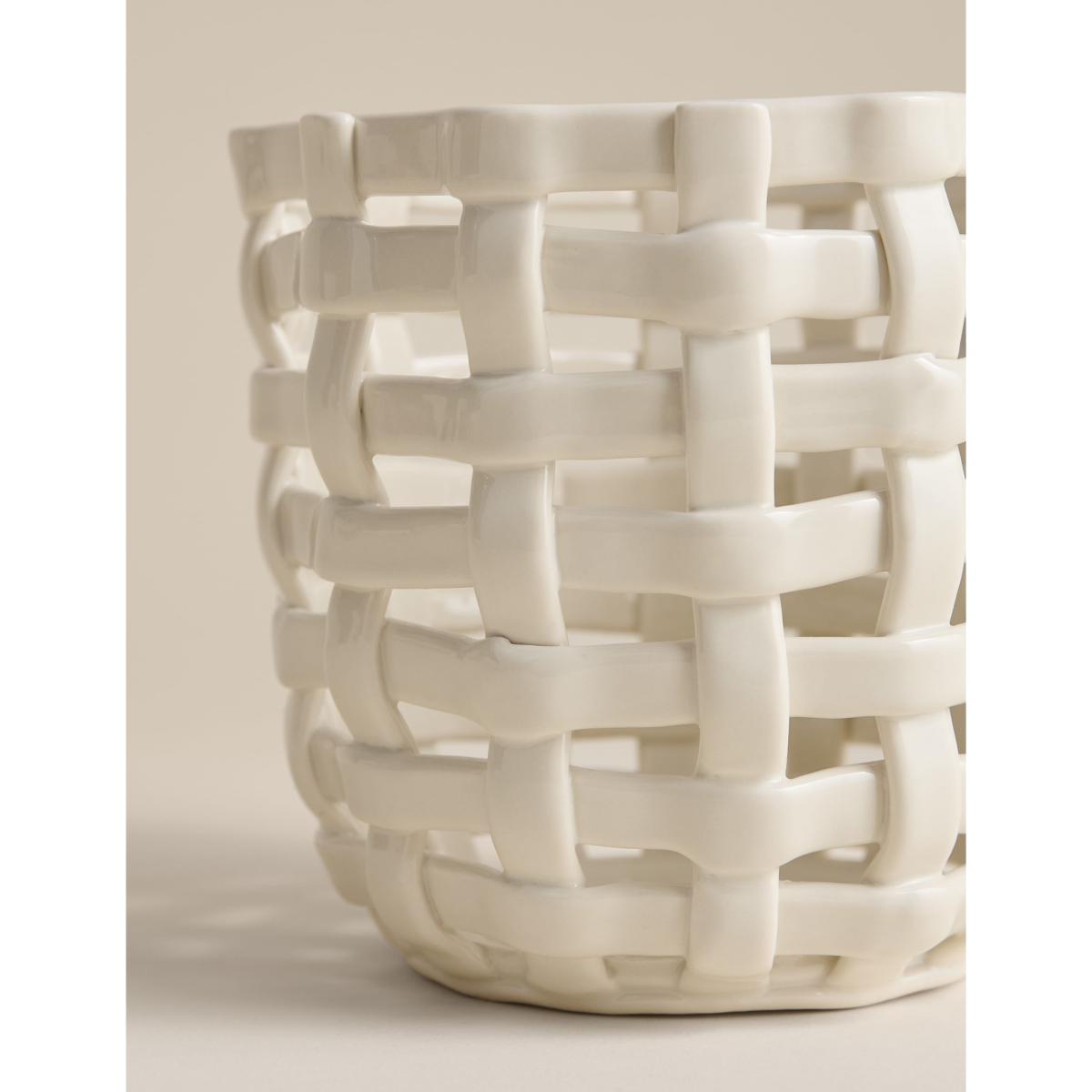 M&S Basket Weave Ceramic Hurricane Candle Holder Cream