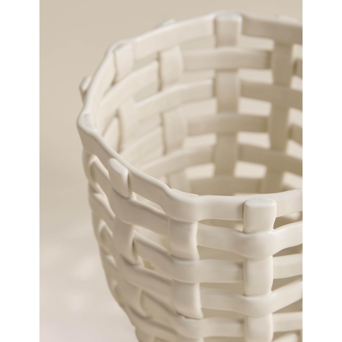 This hurricane candle holder is crafted with a basket weave design that casts a warm, textured glow when a candle is lit inside. Its sturdy ceramic build and timeless finish make it a striking piece for creating a cosy atmosphere.