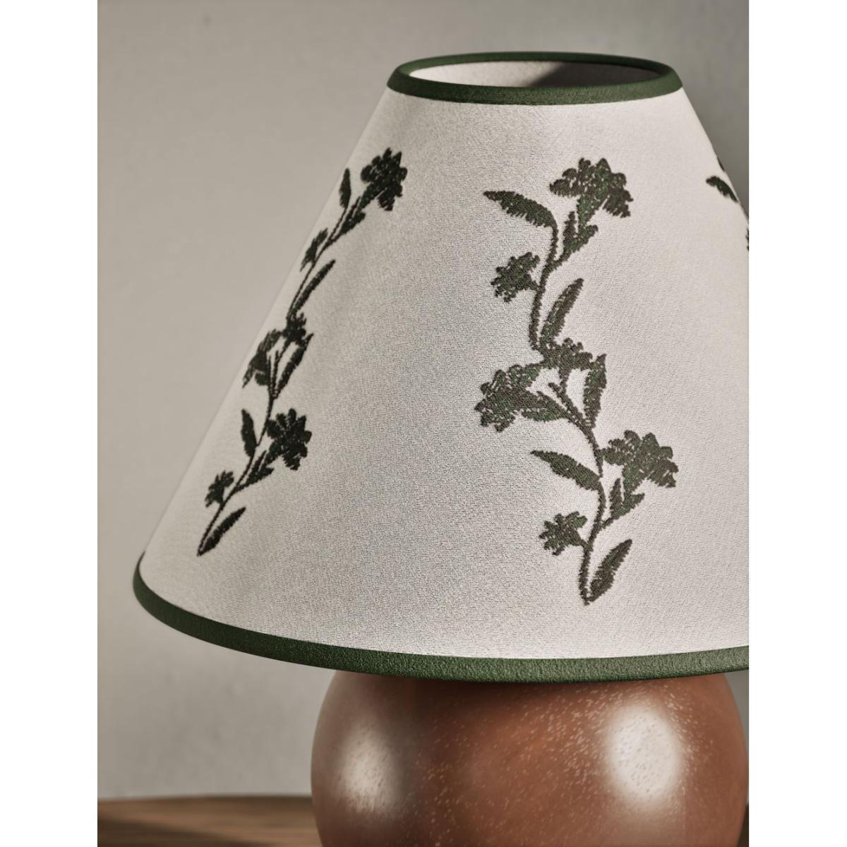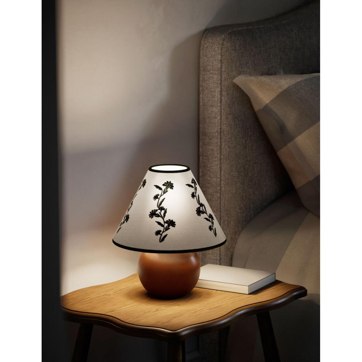 I love this little lamp for its understated charm and versatility. The earthy brown base combined with the natural, embroidered shade makes it ideal for adding warmth to a cosy corner or bedside table. It works particularly well in Scandi-inspired interiors or relaxed living rooms, where natural textures and neutral tones are key. For styling tips, pair it with woven textiles or indoor plants to enhance its organic aesthetic. Its subtle presence also makes it a great choice for creating gentle ambience without overpowering a space, making it both functional and visually appealing for a variety of interiors.