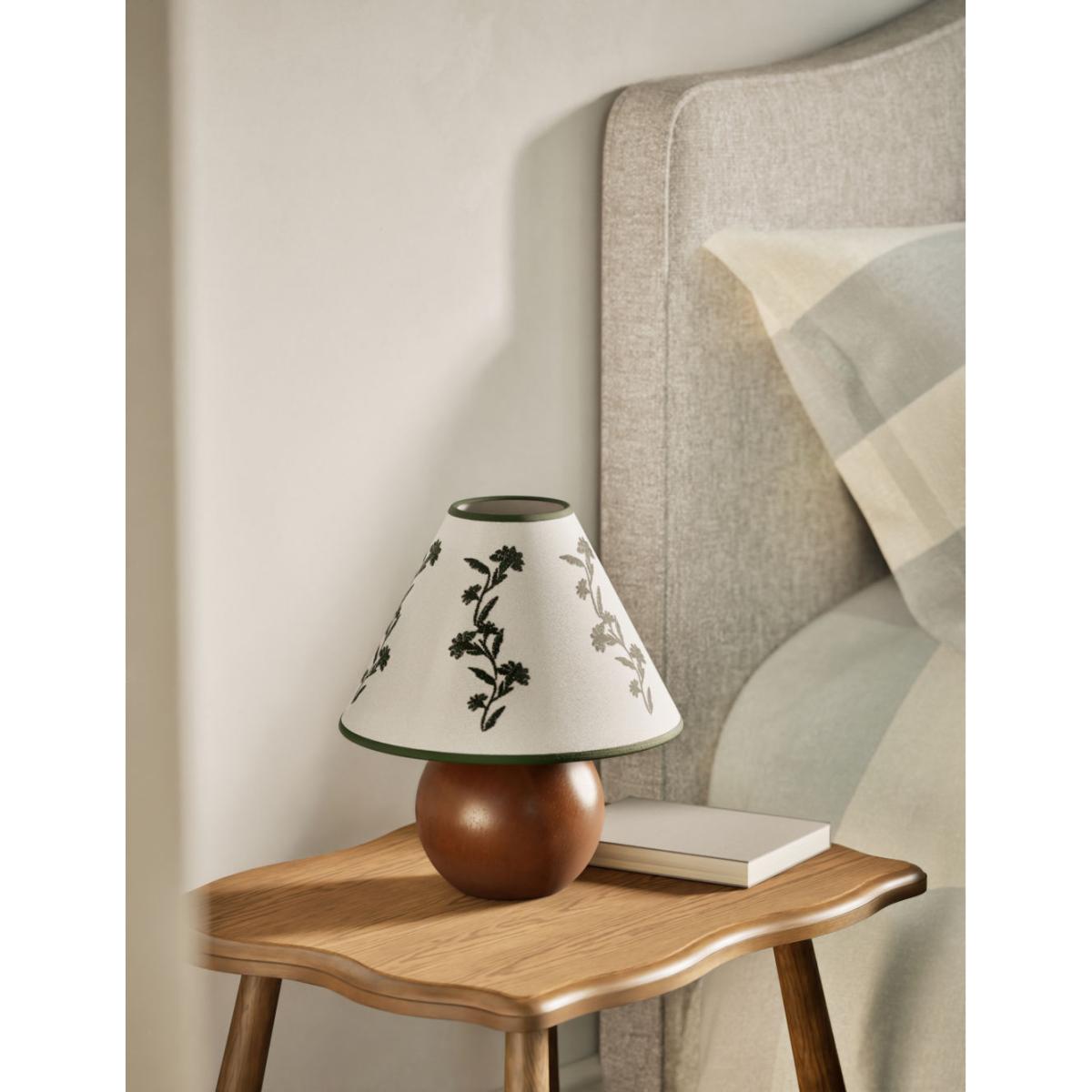This Betty table lamp is great for bedrooms and sideboards. The design features a rounded wooden base and is complete with a pretty floral-patterned shade.