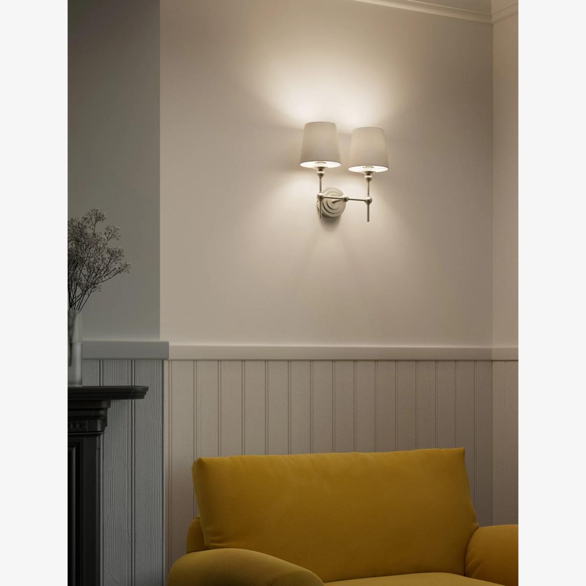 I love this wall light because of its sleek, double shade design which adds a modern yet timeless touch to any space. The silver finish makes it versatile enough to suit both contemporary and classic interiors, particularly in bedrooms, living rooms, or hallways. It works well in schemes that embrace neutral tones or monochrome palettes, adding subtle sophistication. Practical styling tips include placing it above sideboards or seating areas to create gentle, ambient lighting, or pairing it with statement artwork or mirrors to reflect the light and maximise its impact. Keep the shades relatively low to avoid glare and ensure the light is inviting but not overpowering.