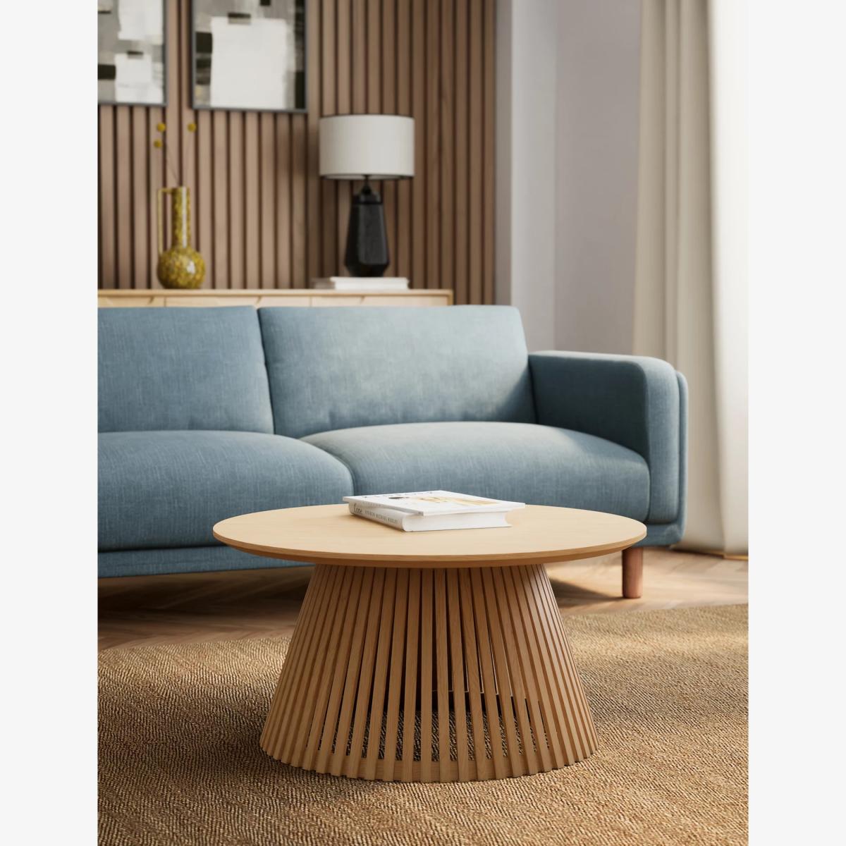 This coffee table from the Boardwalk range brings a fresh and contemporary feel to your space. Its round oak veneer top provides a useful spot for your drink, book or remote control, while its tapered base is slatted to create a striking look. Matching items in the Boardwalk range are also available. We’re so confident our furniture is built to last, our industry-leading guarantee covers any manufacturing failure on all furniture. That’s our promise, and why our furniture comes with a 10-year guarantee that you can trust. Excludes: outdoor furniture and any issues that are a result of normal wear and tear, improper care or accidental damage.
