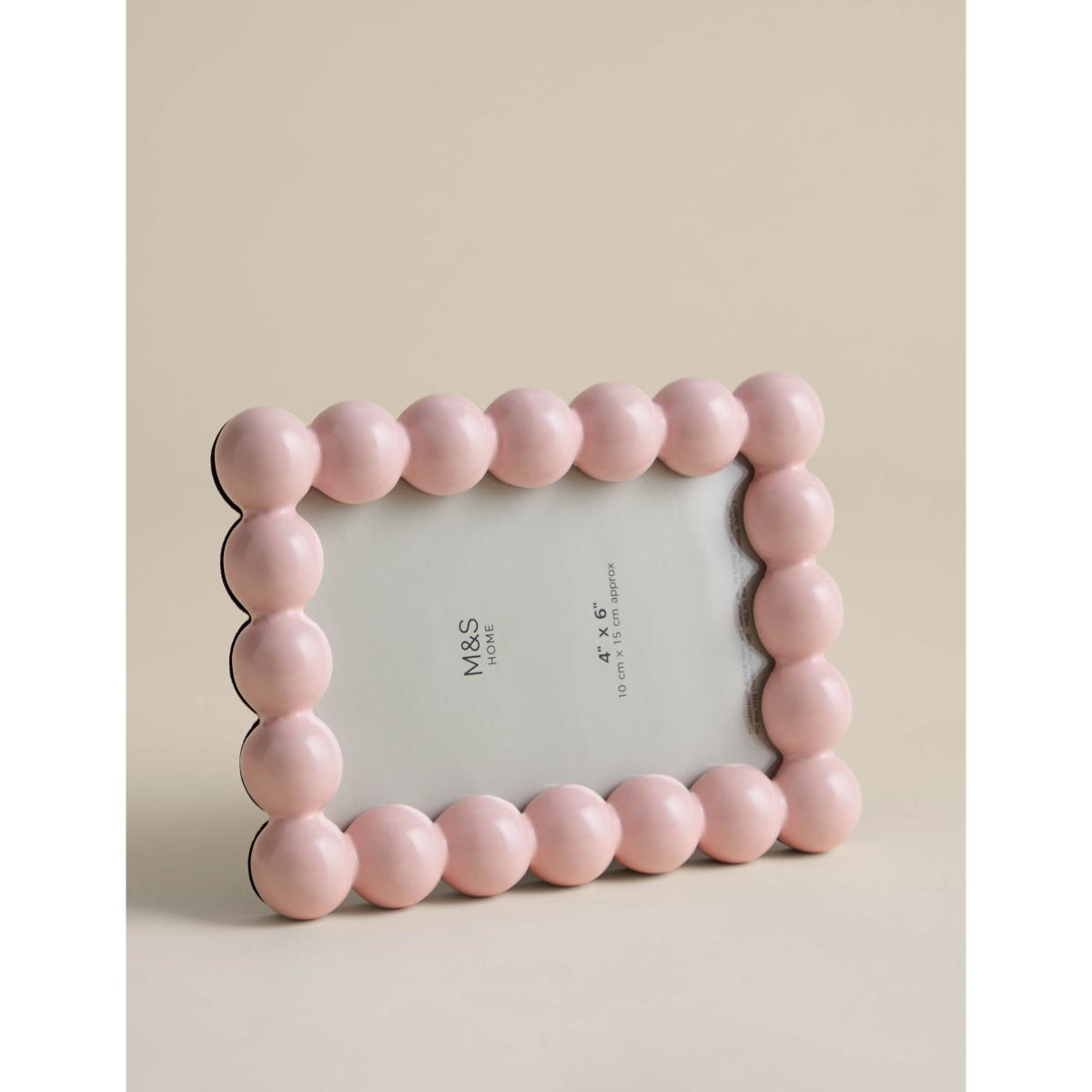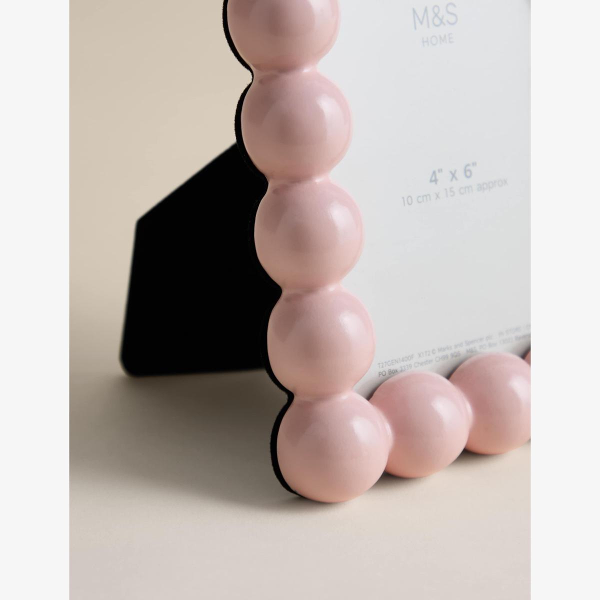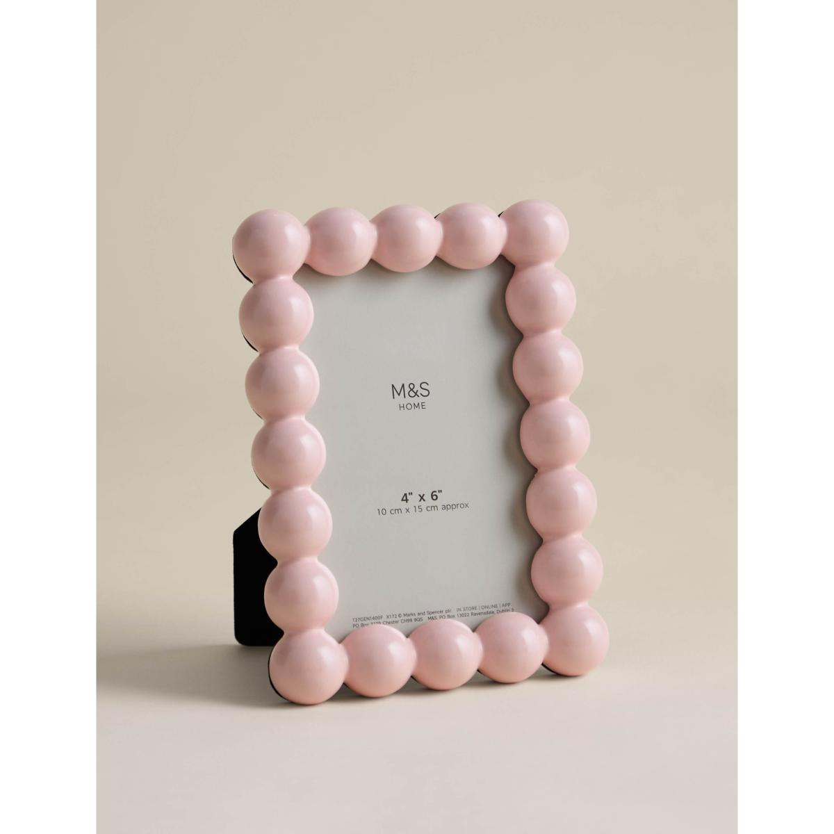 I love the M&S Bobble Photo Frame in navy for its playful yet understated look. Its chunky, rounded beads add a touch of texture without overwhelming a space, making it versatile for both modern and eclectic interiors. It works particularly well on floating shelves, side tables, or within a gallery wall, where its shape can stand out. For styling, consider pairing it with minimalist decor for contrast or mixing it with other navy accents to create a cohesive colour palette. Its compact size makes it perfect for personal photos or small art prints, adding a personalised touch to any room.