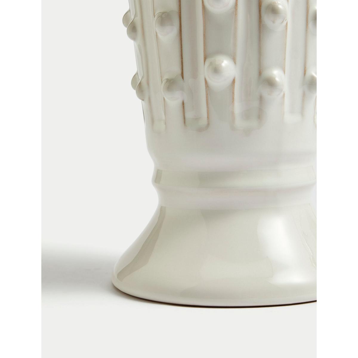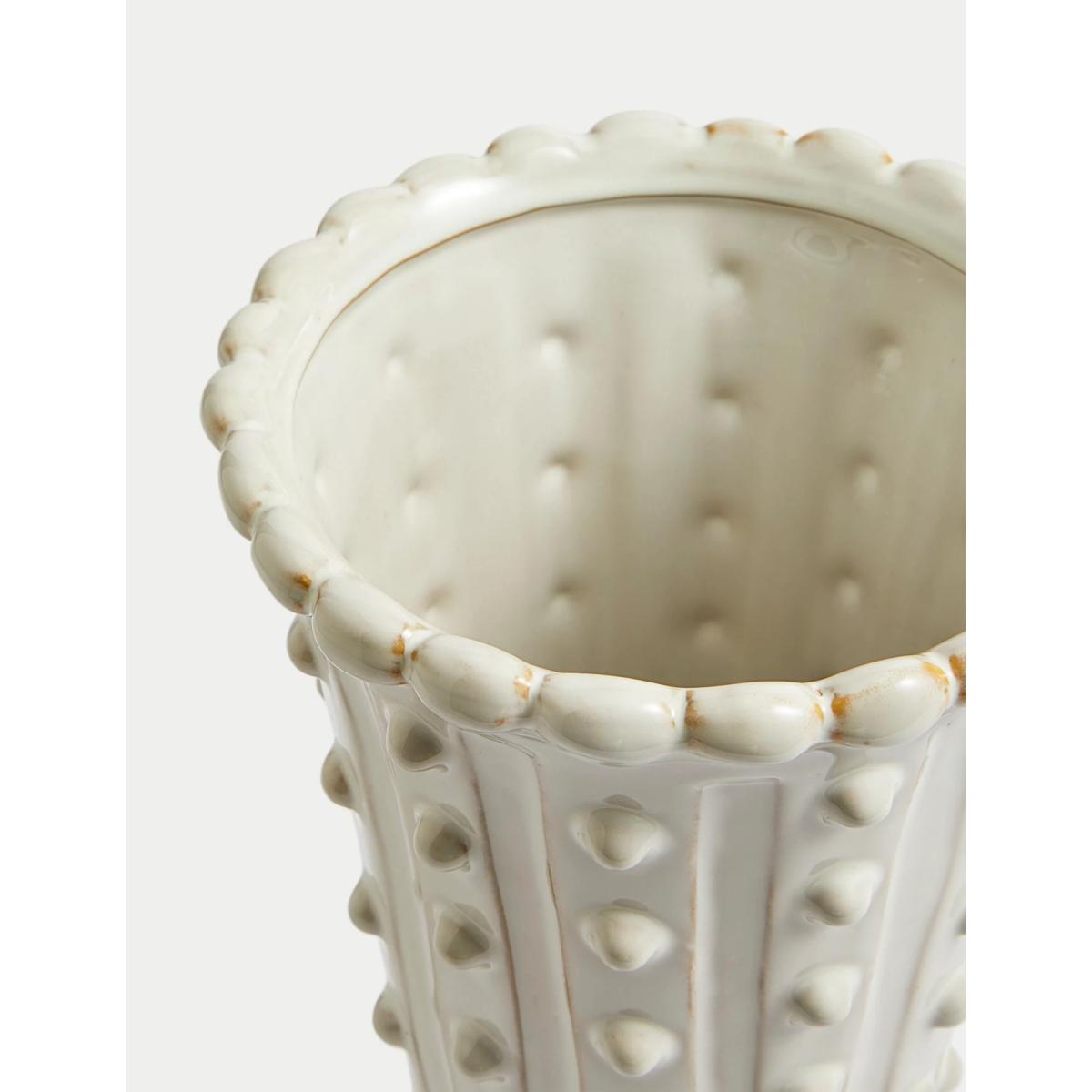 Display your favourite blooms in style with this ceramic bobble trim vase. This tall, conical-shaped design has a glazed finish, with distressed detailing for a slightly aged look.
