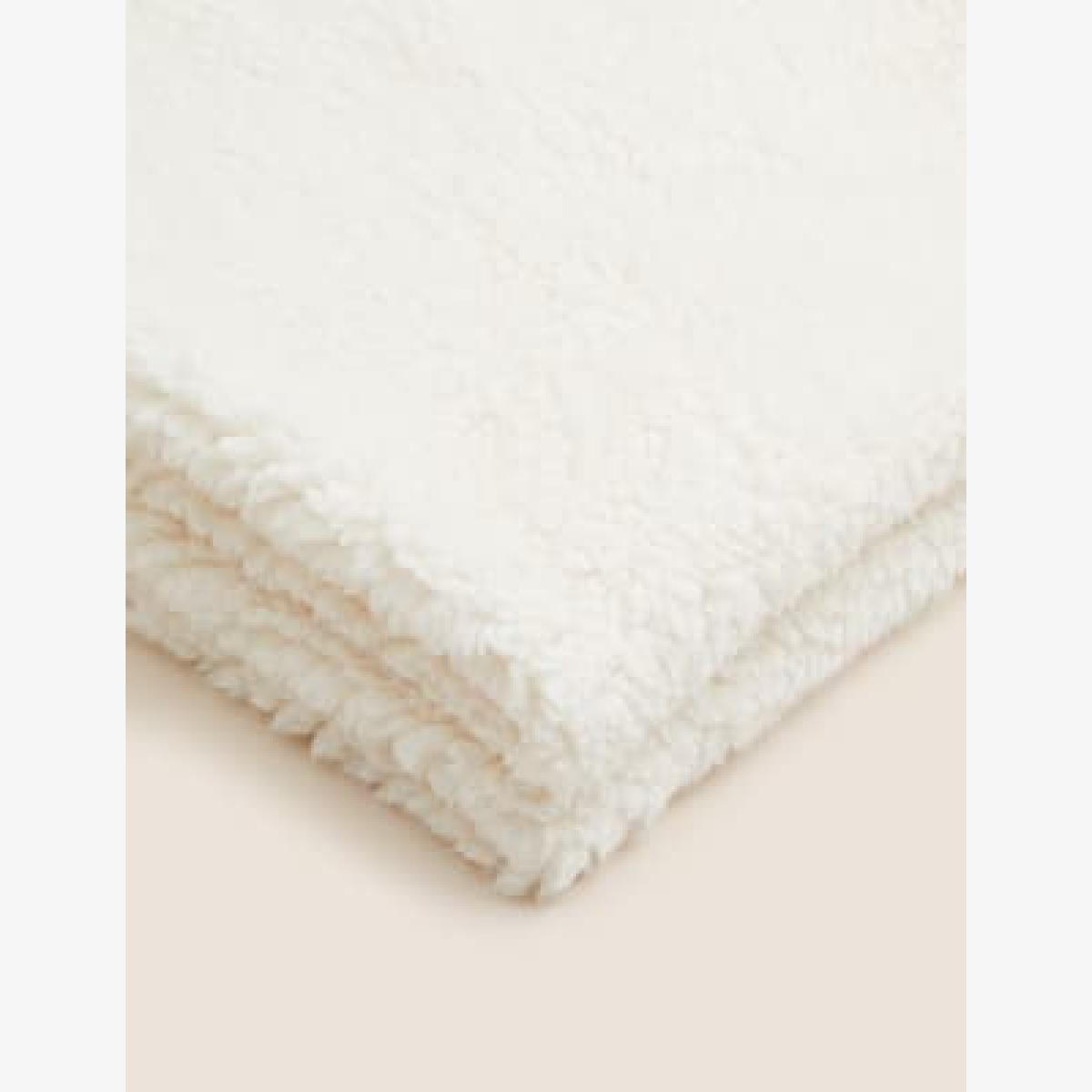M&S Borg Fleece Throw - MED - Cream, Cream,Navy,Neutral,Light Grey