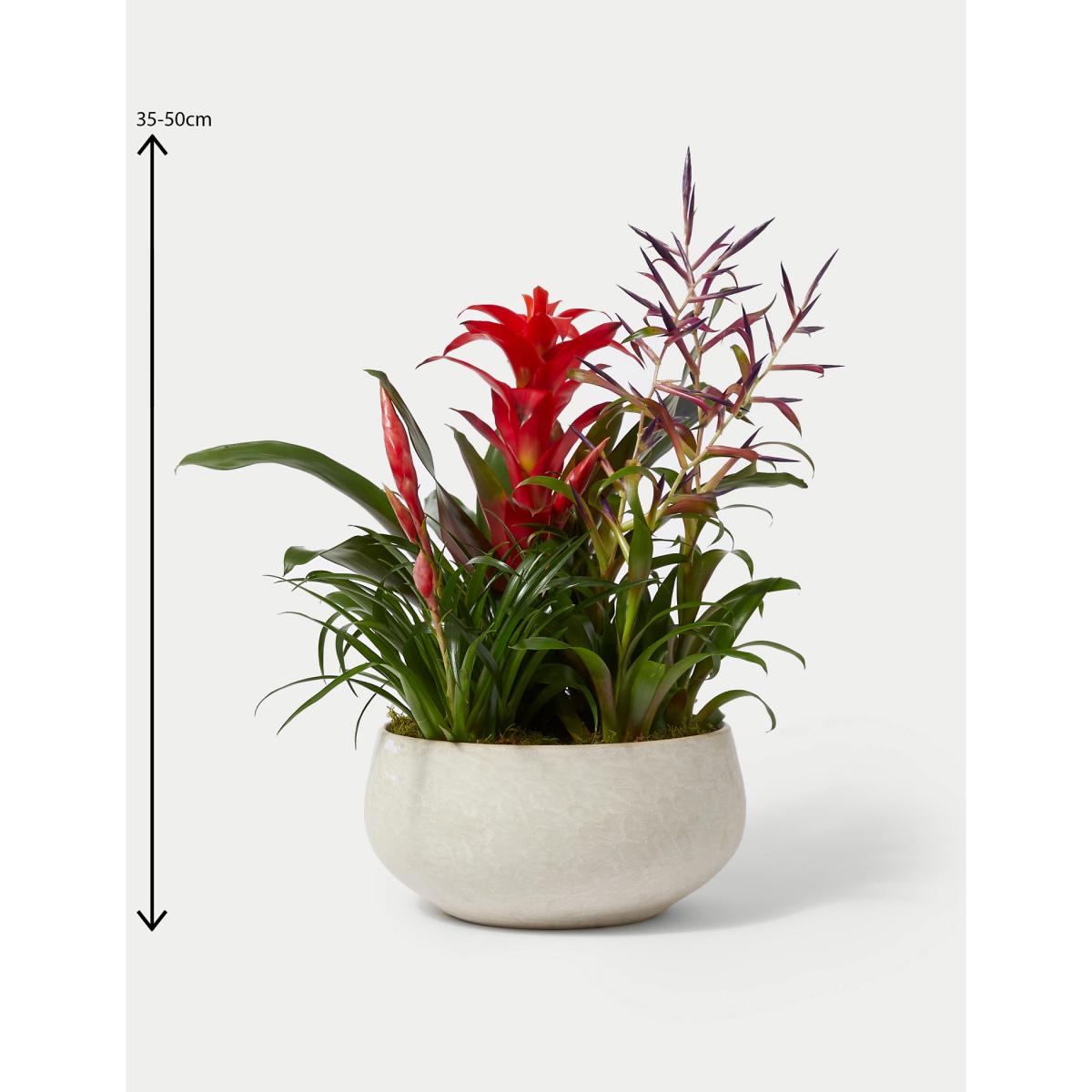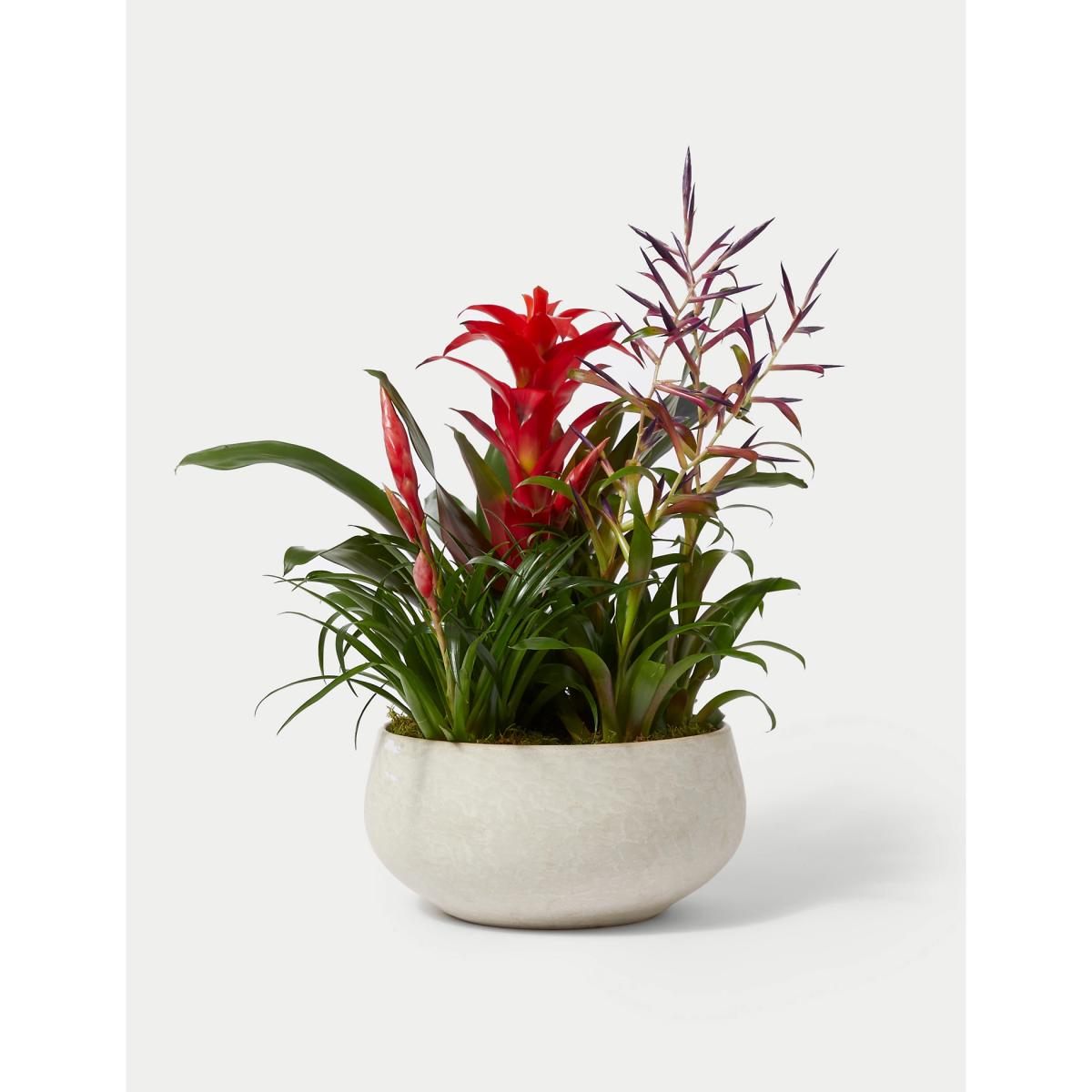 The M&S Bromeliad ceramic pot is a fantastic choice for adding a touch of colour and life to a variety of interior styles. Its clean, neutral finish makes it versatile enough for contemporary or minimalist spaces, while the bright, vivid faux plant adds visual interest without the maintenance of real greenery. I love styling it on side tables, kitchen windowsills, or office shelves where a splash of colour is needed. For a balanced look, pair it with other neutral or metallic accessories to let the plant stand out. Keep in mind that since it's artificial, it’s ideal for spots with less natural light or areas where real plants might struggle to thrive-plus, it always looks perfect, with no watering required.