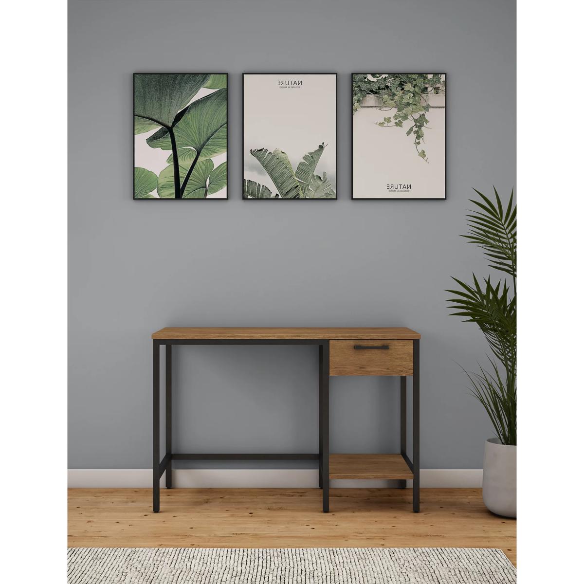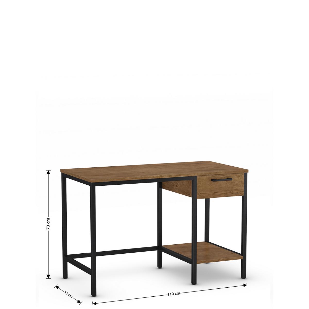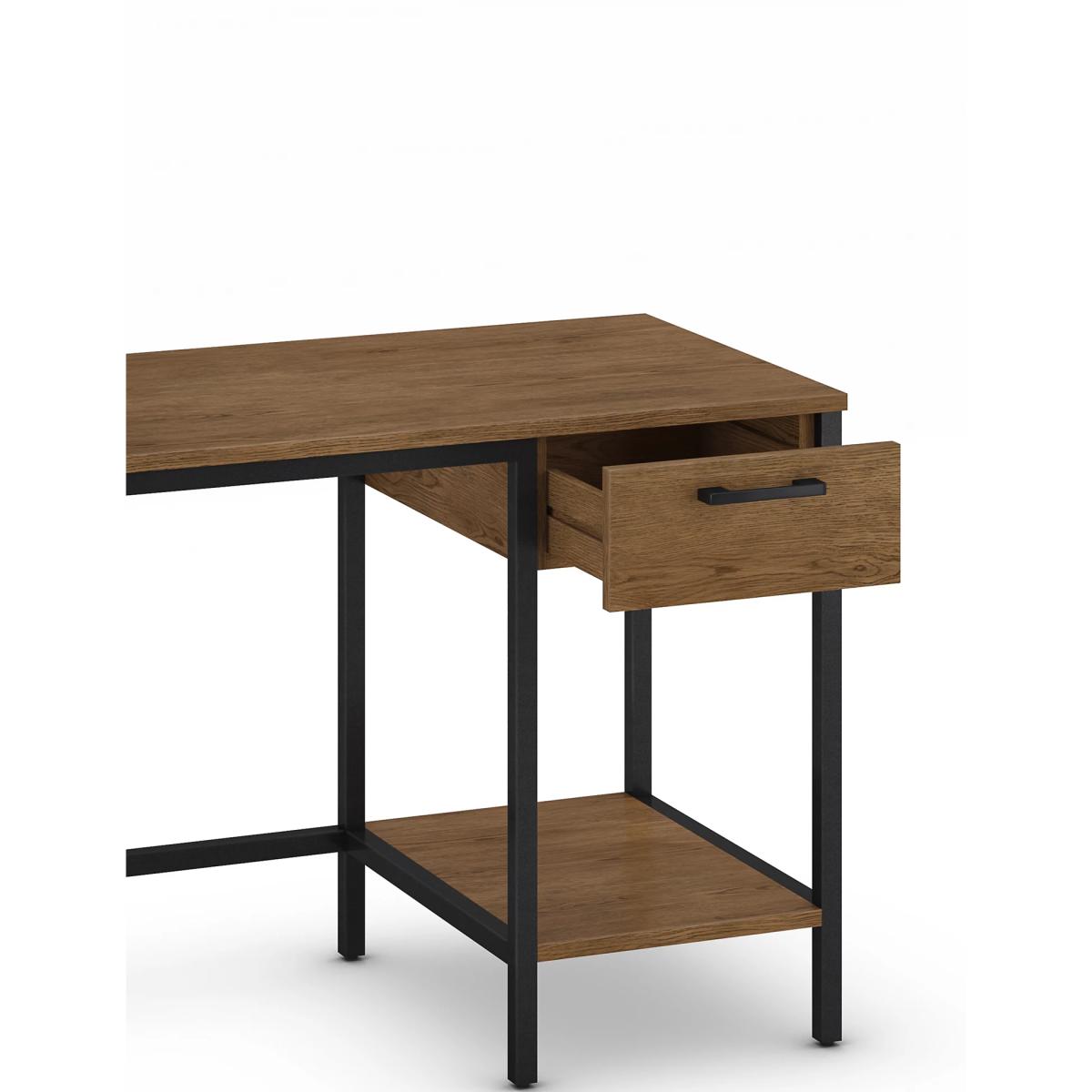 The Brookland desk has an industrial aesthetic which will bring a modern touch to your home. This versatile piece is made with a warm, real wooden veneer in an oak finish. The contrasting dark metal legs and frame add stability and understated style. There's also a handy drawer at the side for stationery and essentials. Matching Brookland items are available.