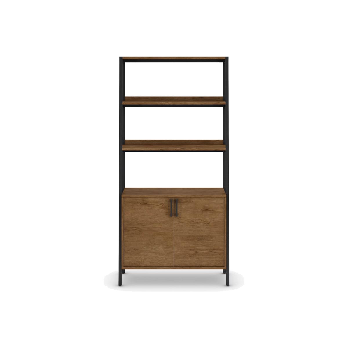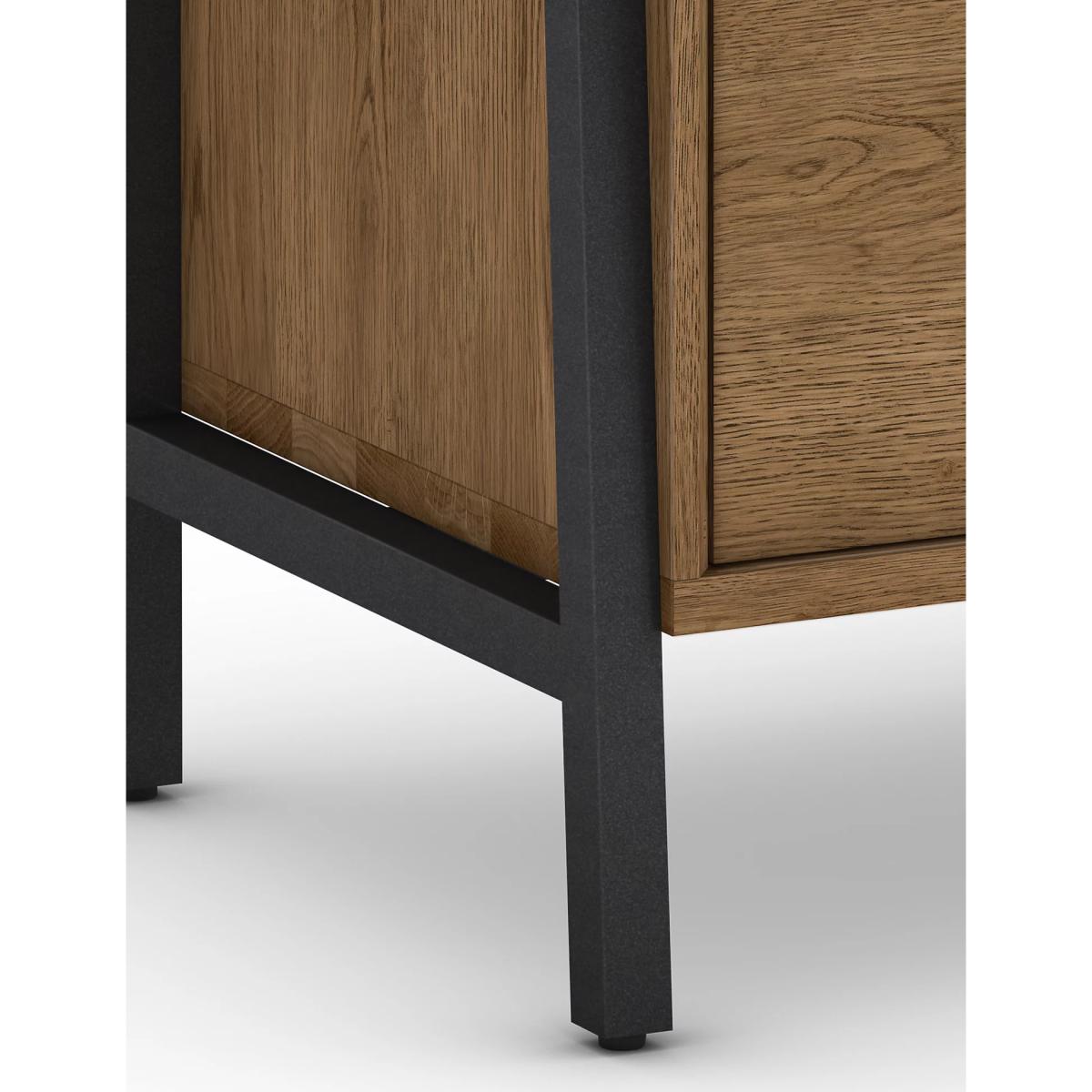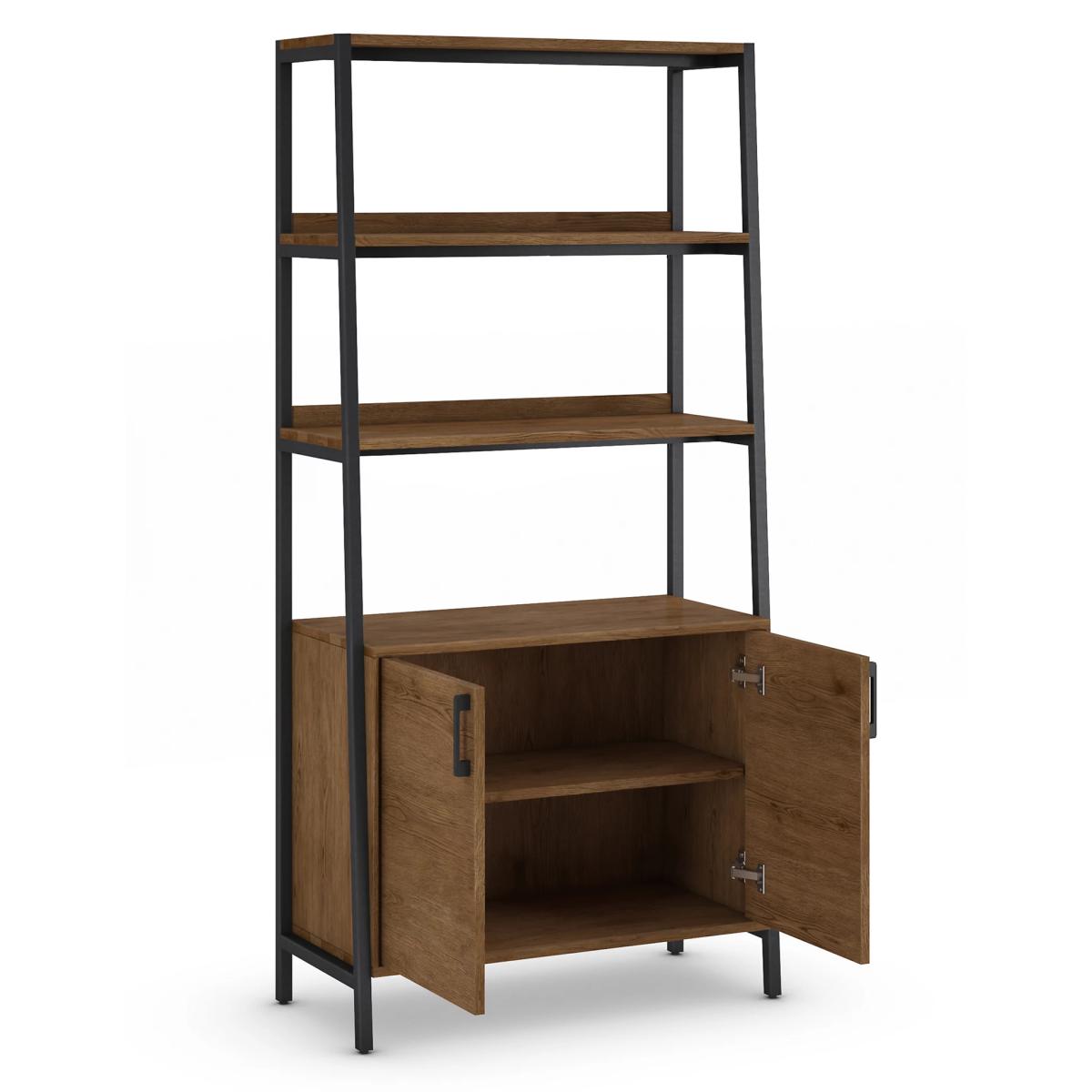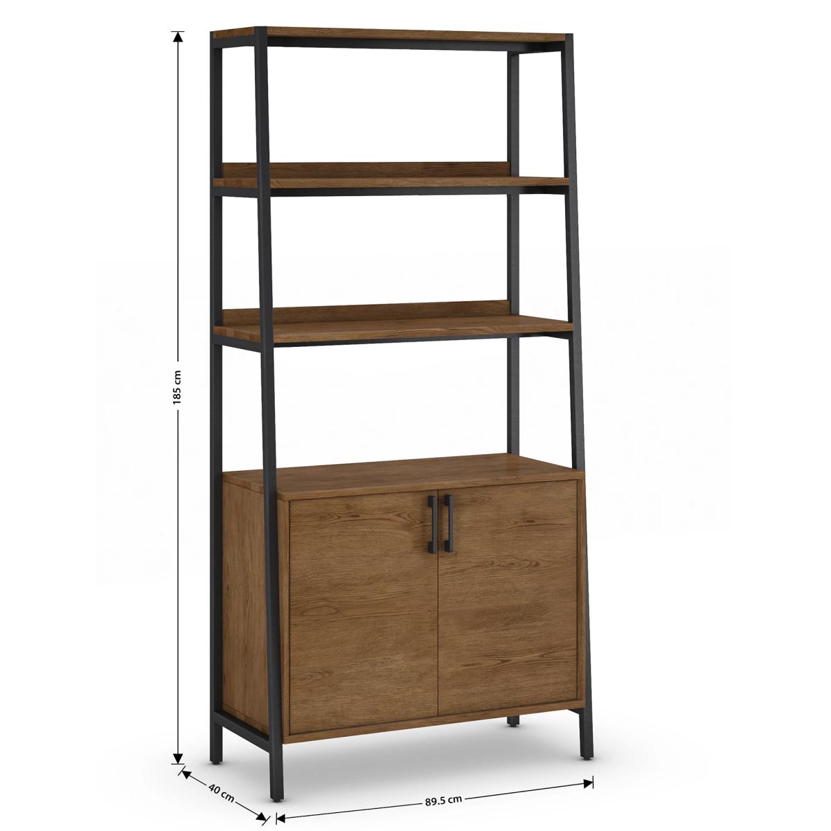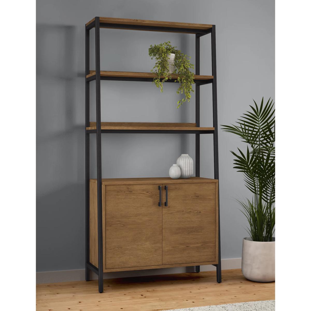 This versatile display cabinet from our Brookland range has a contemporary design which will work with both modern and traditional spaces. Made with a real oak-veneer finish and features dark metal legs and detailing for an industrial-chic aesthetic. With three shelves and two cupboards, there is plenty of room to store items or display special pieces.