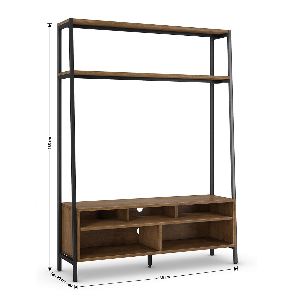 The Brookland ladder TV unit has a modern, industrial aesthetic which will work with most décors. We've added a real oak-veneer finish and dark metal detailing for a contemporary look. It features handy compartments, three slim sections and two wider sections for extra storage space. Matching items are available in the range.
