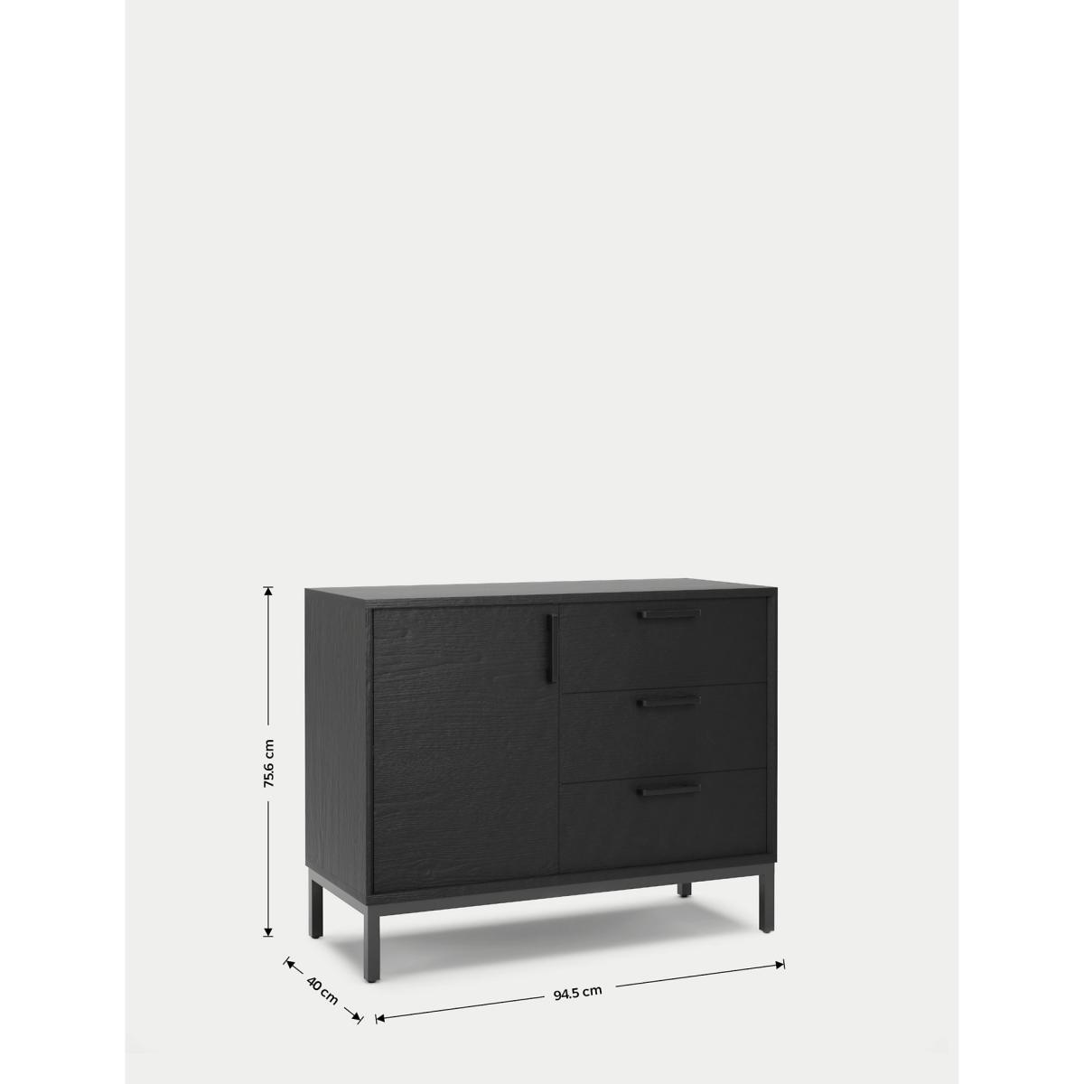 I really like this sideboard for its sleek, modern look and versatile black finish, which makes it a great anchor piece in both contemporary and industrial interiors. It works particularly well in living rooms, dining areas, or hallways where you want to combine practicality with style. Practical tips include styling the top with a mix of minimal decorative objects and lamps for ambient lighting, and using the drawers for clutter storage to keep surfaces tidy. Its muted colour palette allows it to pair effortlessly with both bold or neutral colour schemes, and it can also serve as a backdrop for colourful accessories or artwork to make the space pop.