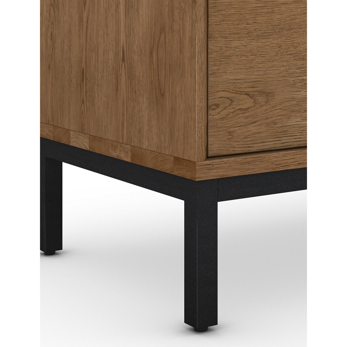 I love this piece because of its versatile, understated design that works well in a variety of interiors, from Scandi-inspired spaces to more contemporary schemes. The mix of black and natural wood tones makes it easy to style with both warm and cool colour palettes. It’s a practical choice, offering ample storage with its drawers and open shelf space for media equipment or decorative accessories. For styling tips, consider placing a few curated decorative objects or plants on top to soften its sleek look, and keep cords tidy by using the open shelf to hide cables. It’s a solid all-rounder that brings function and style to any living room setup.