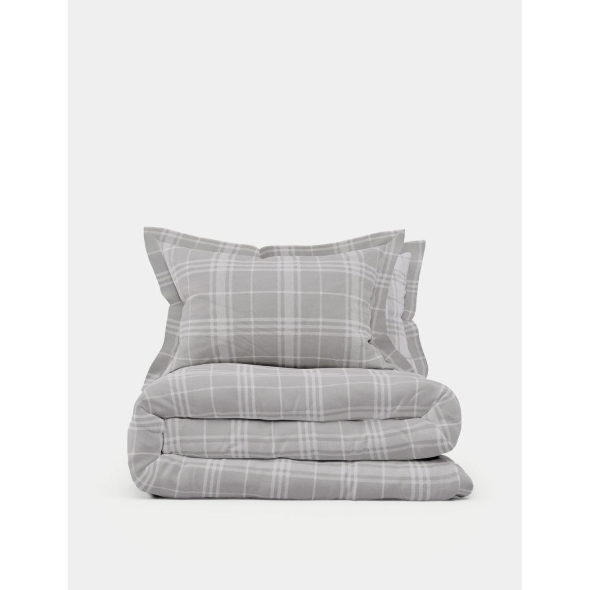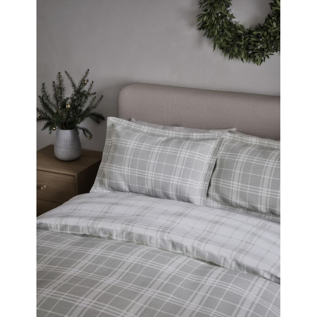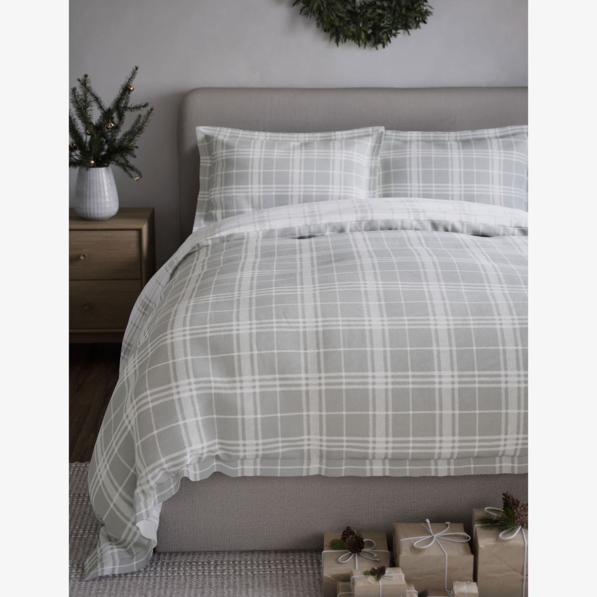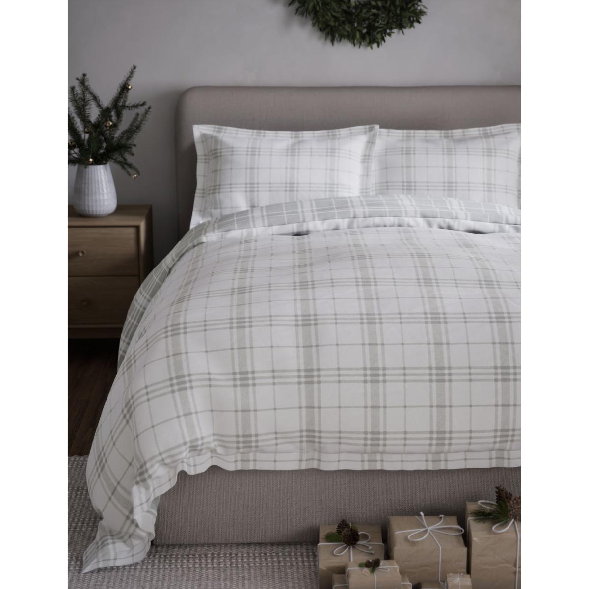 M&S Brushed Cotton Checked Bedding Set - 6FT - Grey Mix, Grey Mix
