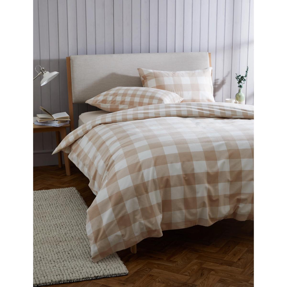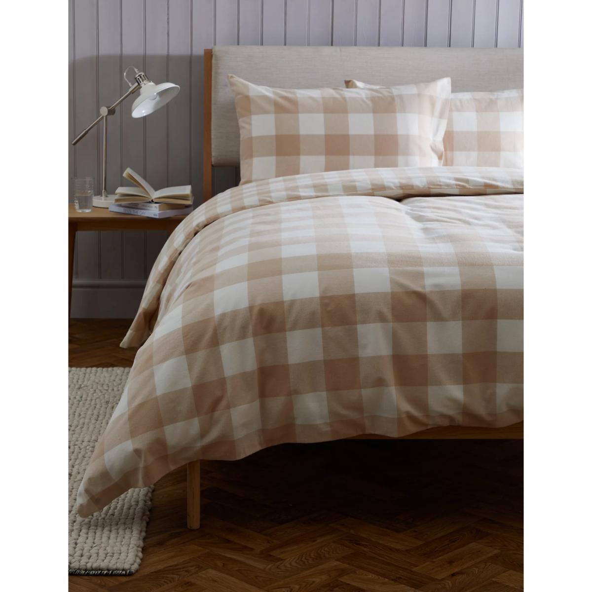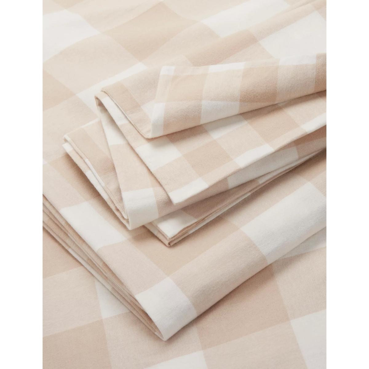 M&S Brushed Cotton Gingham Bedding Set - SGL - Neutral, Neutral