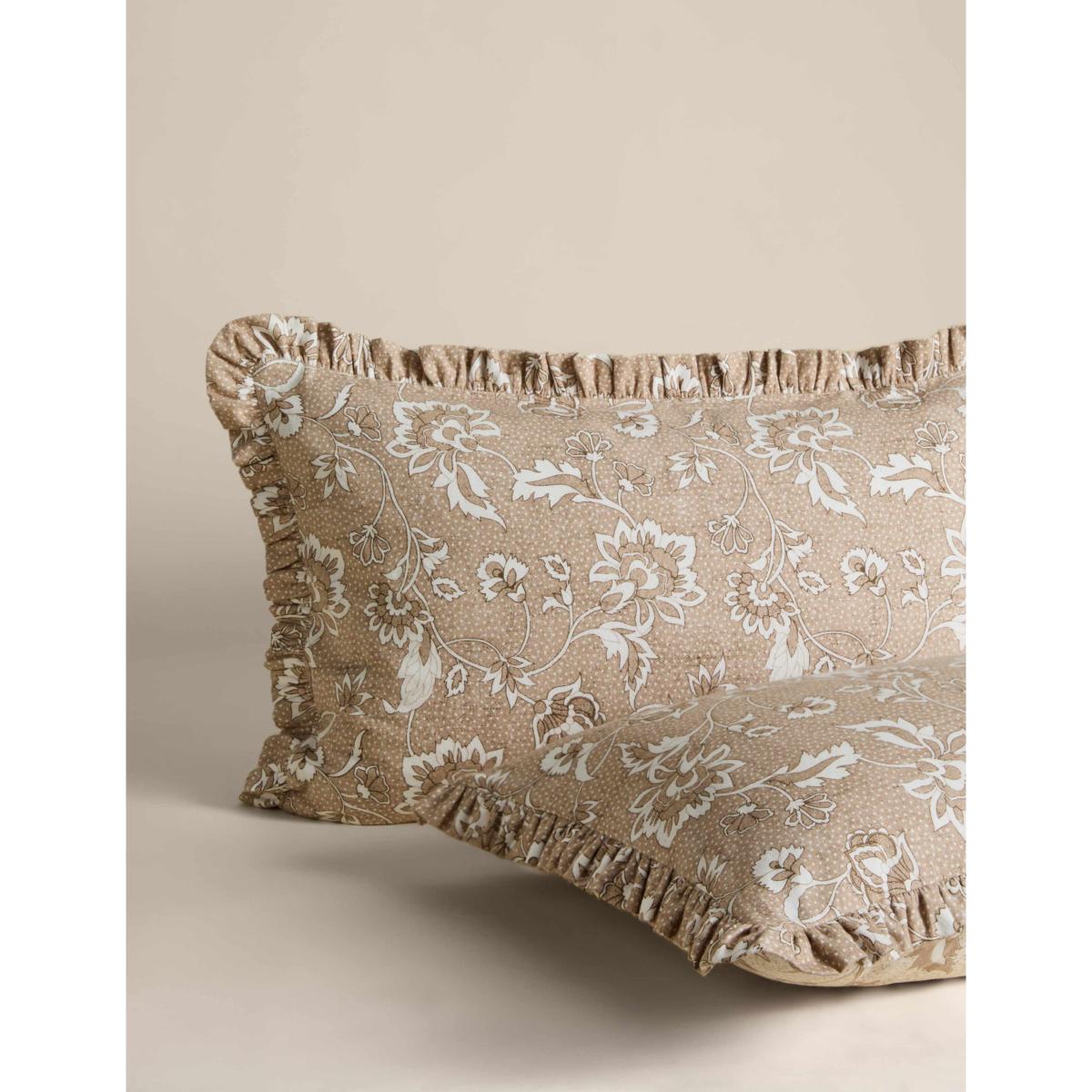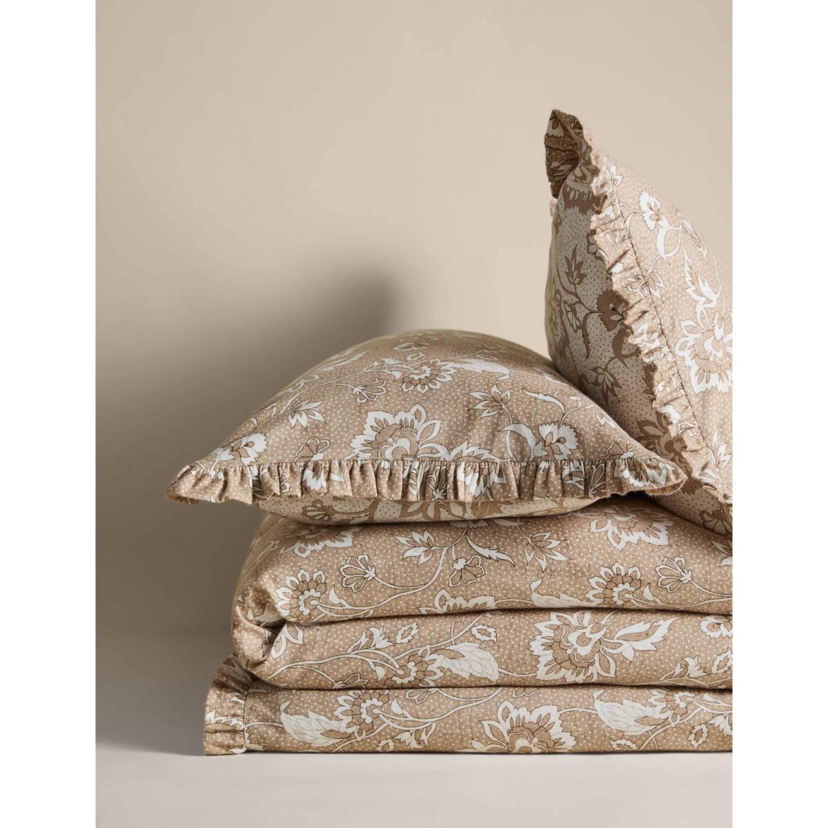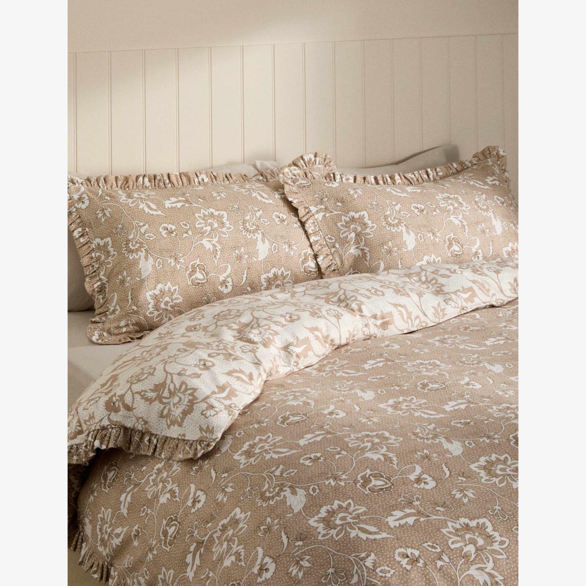 M&S Brushed Cotton Printed Ruffle Edge Bedding Set Natural Mix