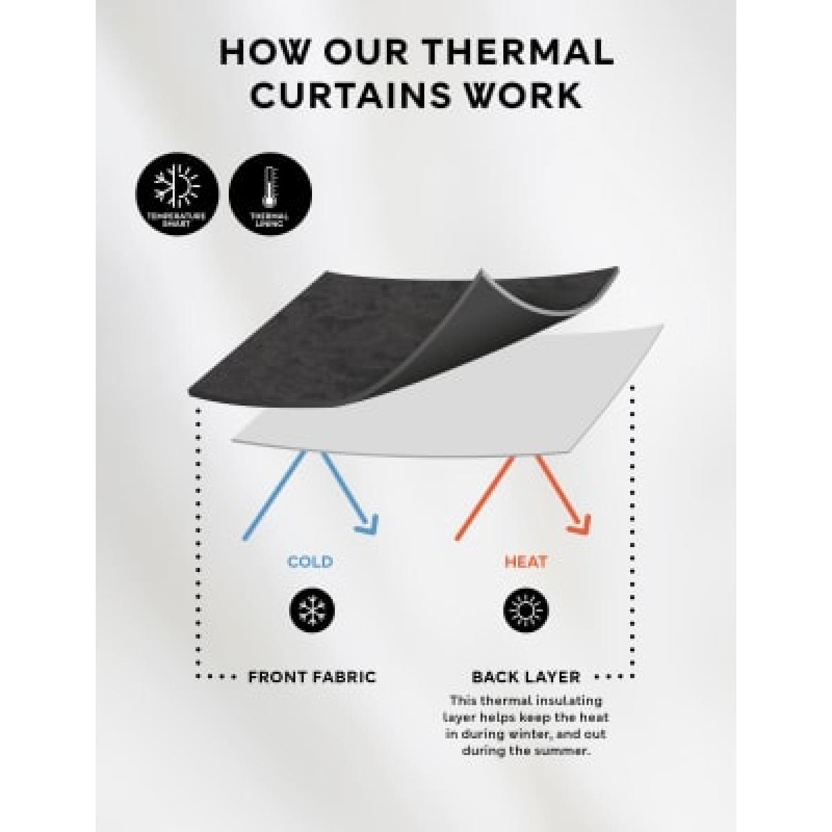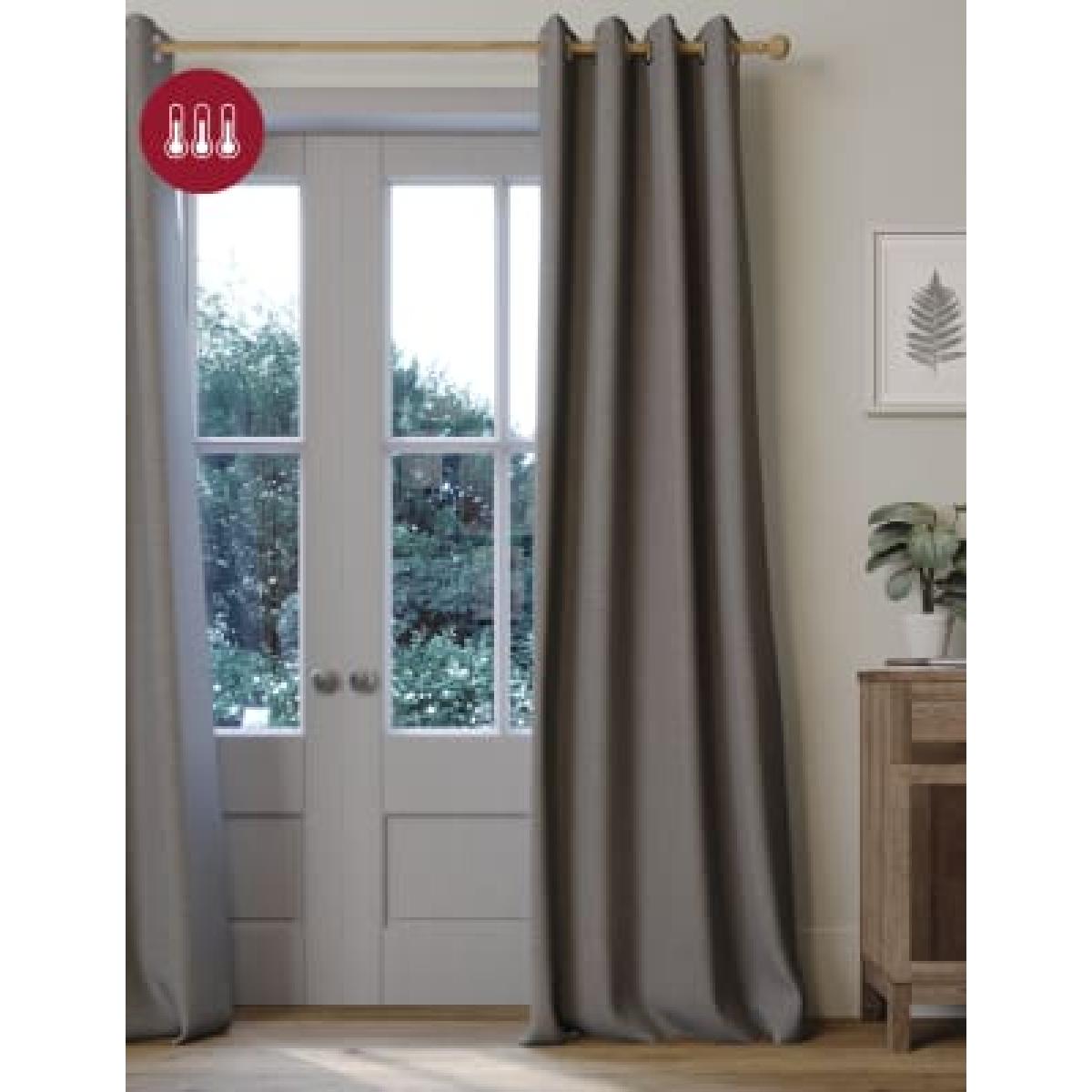 Nothing pulls a room together like the perfect set of curtains. This pair is crafted from brushed fabric for an elegant drape and are easy to hang thanks to eyelet detailing. A blackout finish blocks light from outside and ensures total privacy. Not only that but these curtains are temperature smart, so their thermal lining helps keep the heat in during the winter and out during the summer.