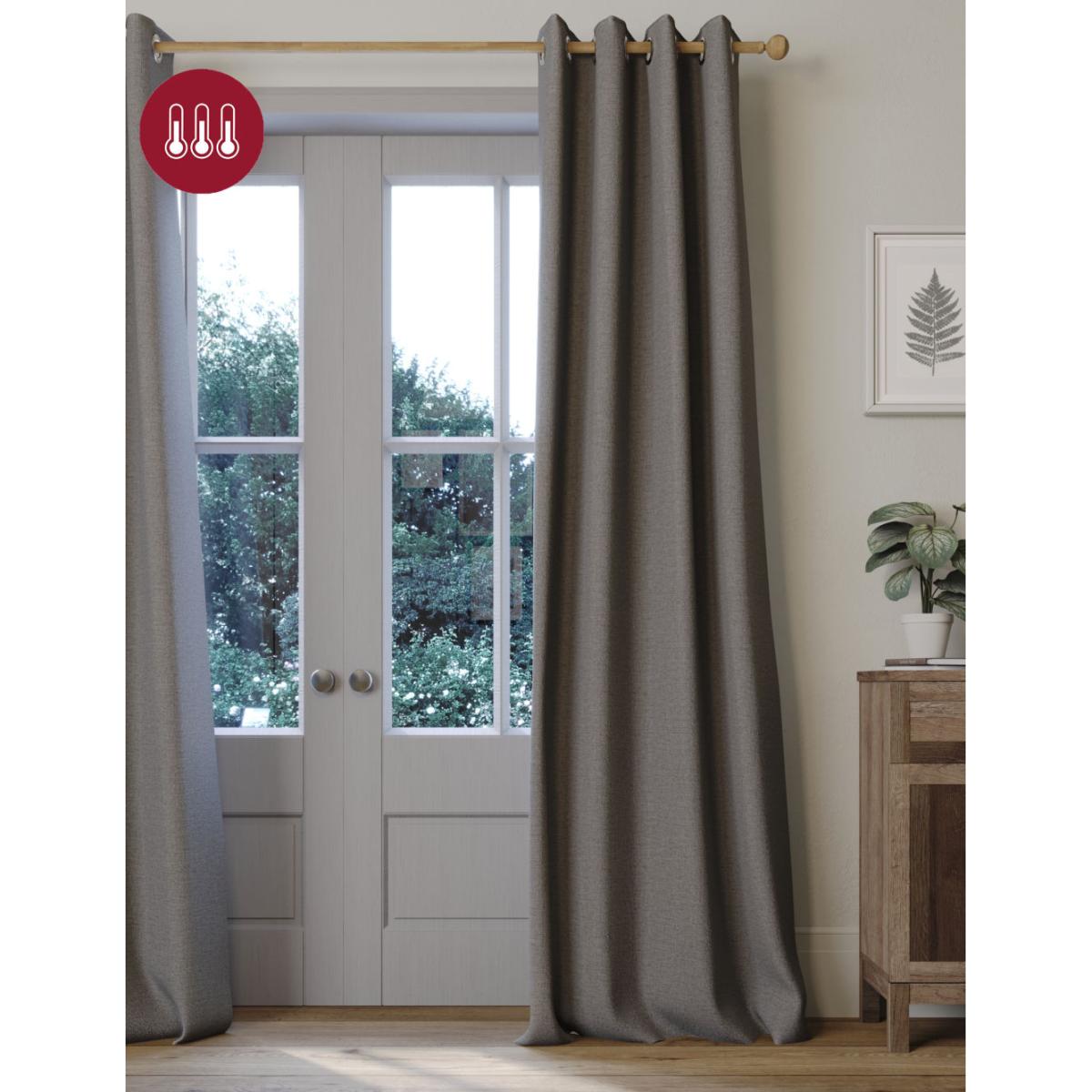 Nothing pulls a room together like the perfect set of curtains. This pair is crafted from brushed fabric for an elegant drape and are easy to hang thanks to eyelet detailing. A blackout finish blocks light from outside and ensures total privacy. Not only that but these curtains are temperature smart, so their thermal lining helps keep the heat in during the winter and out during the summer. Maximum Warmth Heat Rating: Our Maximum Warmth heat rating means that this fabric is proven to show thermal performance helping you keep you warm when the weather gets chilly.