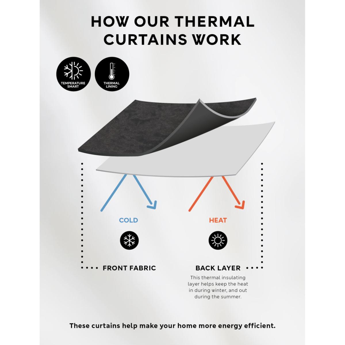 Nothing pulls a room together like the perfect set of curtains. This pair is crafted from brushed fabric for an elegant drape and are easy to hang thanks to eyelet detailing. A blackout finish blocks light from outside and ensures total privacy. Not only that but these curtains are temperature smart, so their thermal lining helps keep the heat in during the winter and out during the summer. Maximum Warmth Heat Rating: Our Maximum Warmth heat rating means that this fabric is proven to show thermal performance helping you keep you warm when the weather gets chilly.