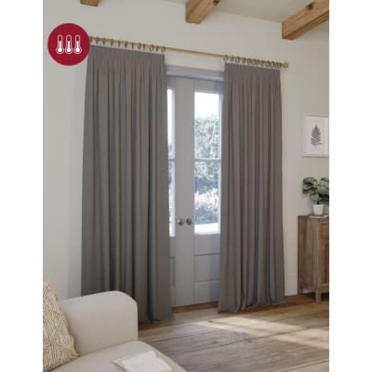 Add the finishing touch to your space with these curtains. The fabric is brushed for extra body and a beautiful drape and has pencil pleats for a smart look. A blackout finish ensures total privacy, making them a great choice for street-facing rooms or bedrooms. Not only that but these curtains are temperature smart, so their thermal lining helps keep the heat in during the winter and out during the summer. Maximum Warmth Heat Rating: These curtains have been given our Maximum Warmth heat rating which means that this fabric is proven to show thermal performance helping you keep you warm when the weather gets chilly.