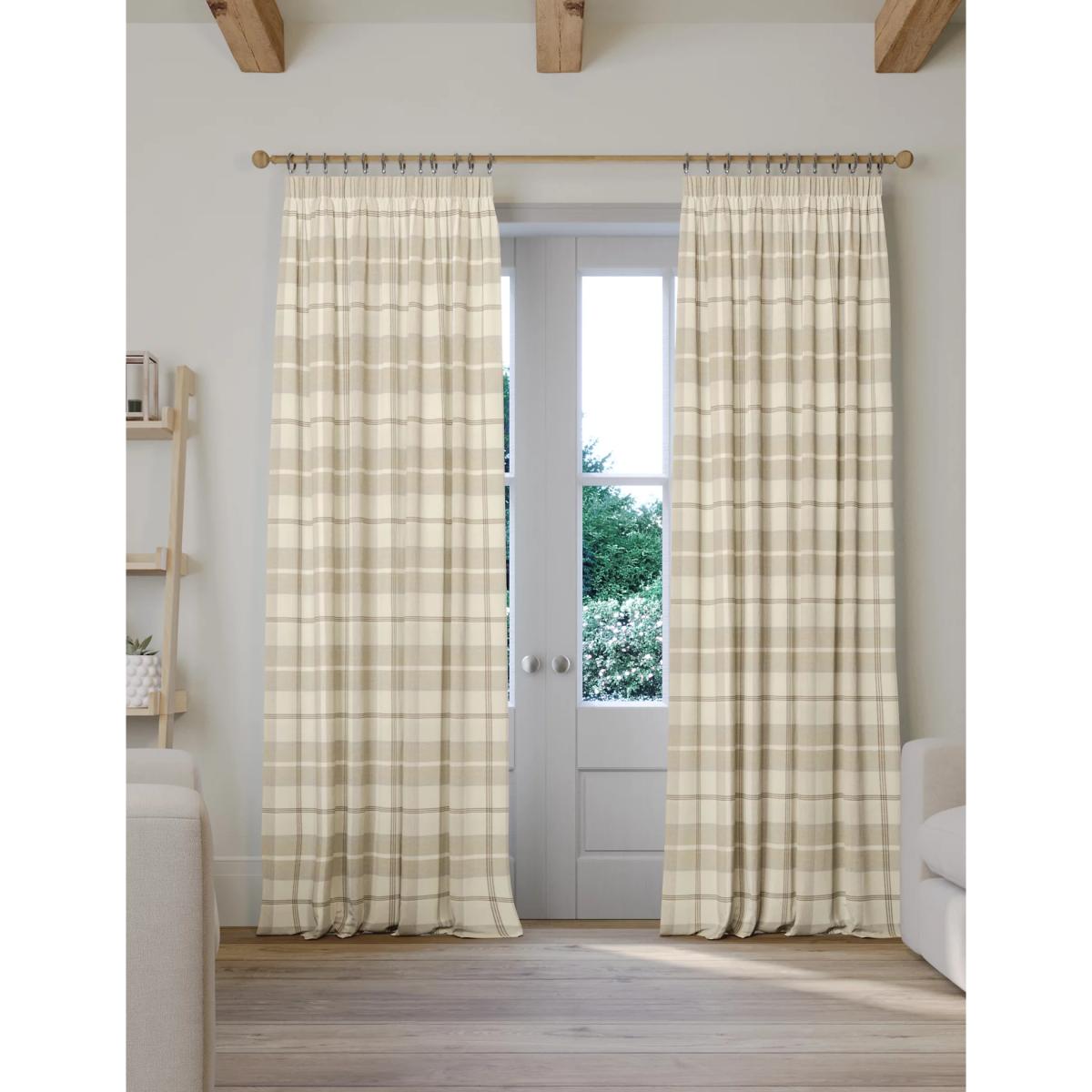 M&S Brushed Woven Checked Pencil Pleat Curtains - WDR90 - Natural, Natural