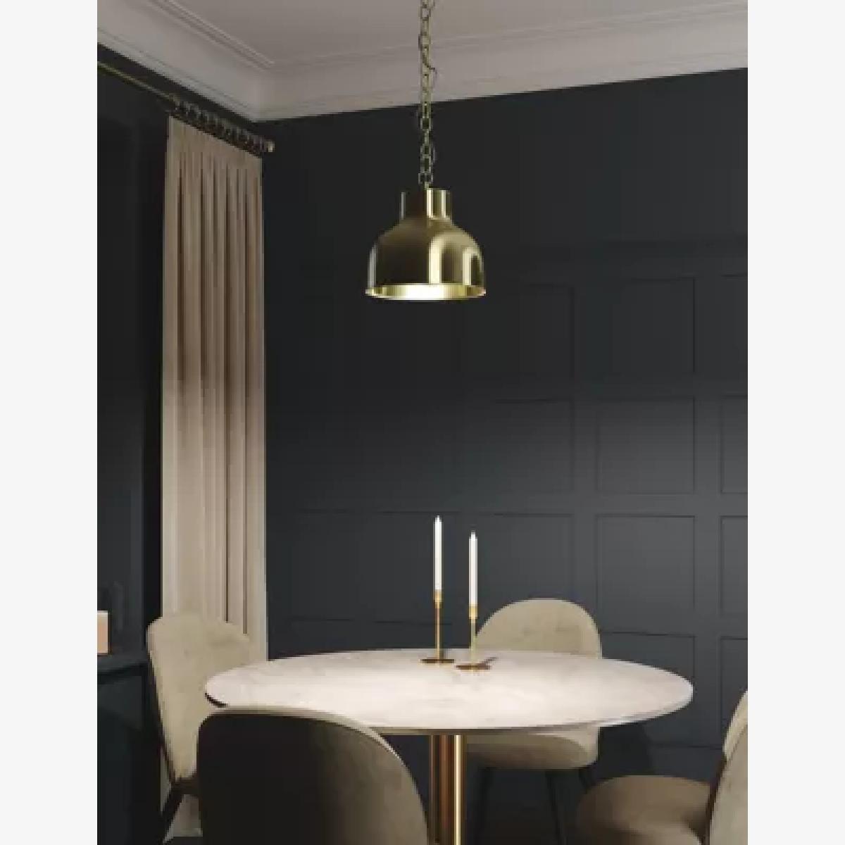 I love the M&S Cambourne Pendant Light in antique brass for its timeless elegance and versatile style. It works really well in both traditional and contemporary interiors, adding a warm, metallic touch without feeling overly glam. For practical styling, I’d recommend hanging it over a dining table or kitchen island, where its soft, reflective finish can enhance the space’s overall ambience. Pairing it with neutral or muted tones allows the brass to stand out, but it also mixes beautifully with wood and darker shades, as seen in the image. A good tip is to keep the surrounding decor simple to let the pendant be the statement piece, while ensuring the height placement provides enough task lighting without glare.