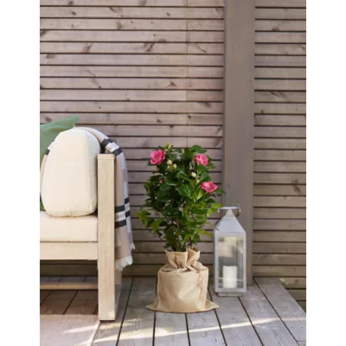 I love this camellia plant for its versatility and low-maintenance appeal, making it a practical choice for a variety of interiors. It works particularly well in cosy sitting rooms, conservatories, or even on balcony terraces where real plants might not thrive year-round. Styling tips include placing it in a neutral or textured planter to enhance its natural look, and pairing it with lanterns or candles for a relaxed, inviting vibe. It's a great option for adding some greenery and colour without the fuss of watering or sunlight, making it ideal for busy homes or spaces where real plants struggle to thrive.