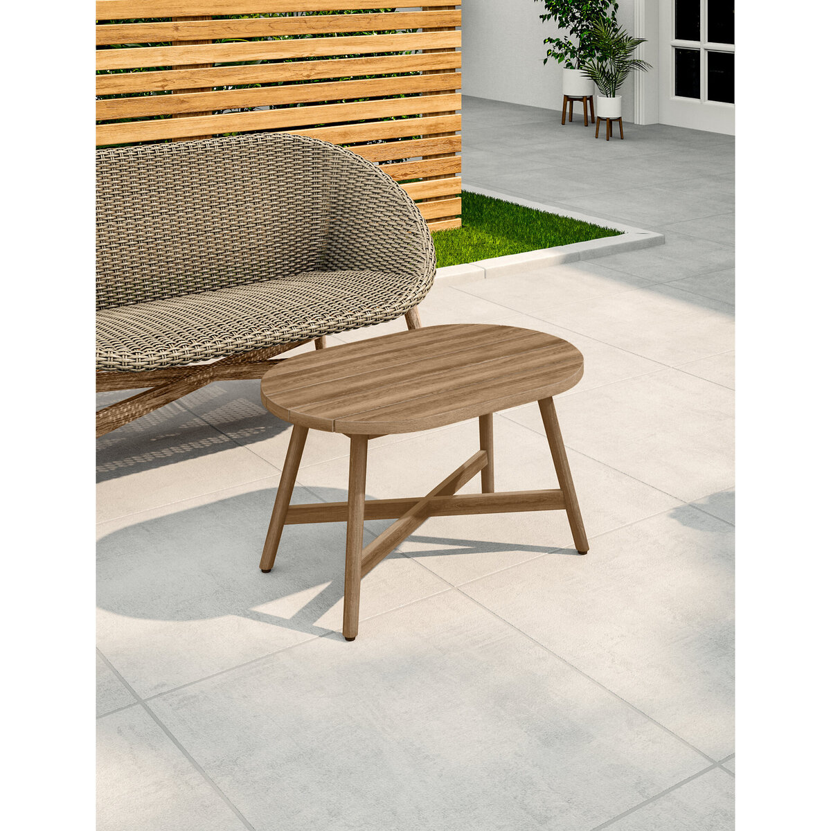 I love this teak coffee table for its clean, natural lines and durability - perfect for both relaxed and contemporary settings. It works well in light, airy interiors, especially those leaning towards a Scandinavian or coastal vibe, thanks to its warm wood tone. A practical styling tip is to keep the surface minimal with a few carefully chosen accessories, such as a ceramic tray or a stack of books, to highlight its natural beauty. It also pairs nicely with soft textiles, like linen cushions or a woven rug, for a cosy yet stylish feel. Its solid build makes it versatile for both indoor and covered outdoor spaces, making it a reliable statement piece in various schemes.