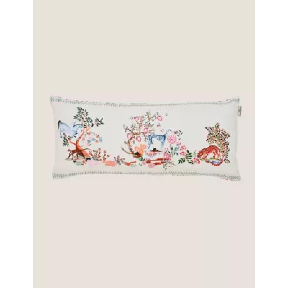 M&S Cath Kidston Pure Cotton Painted Kingdom Bolster Cushion - White, White