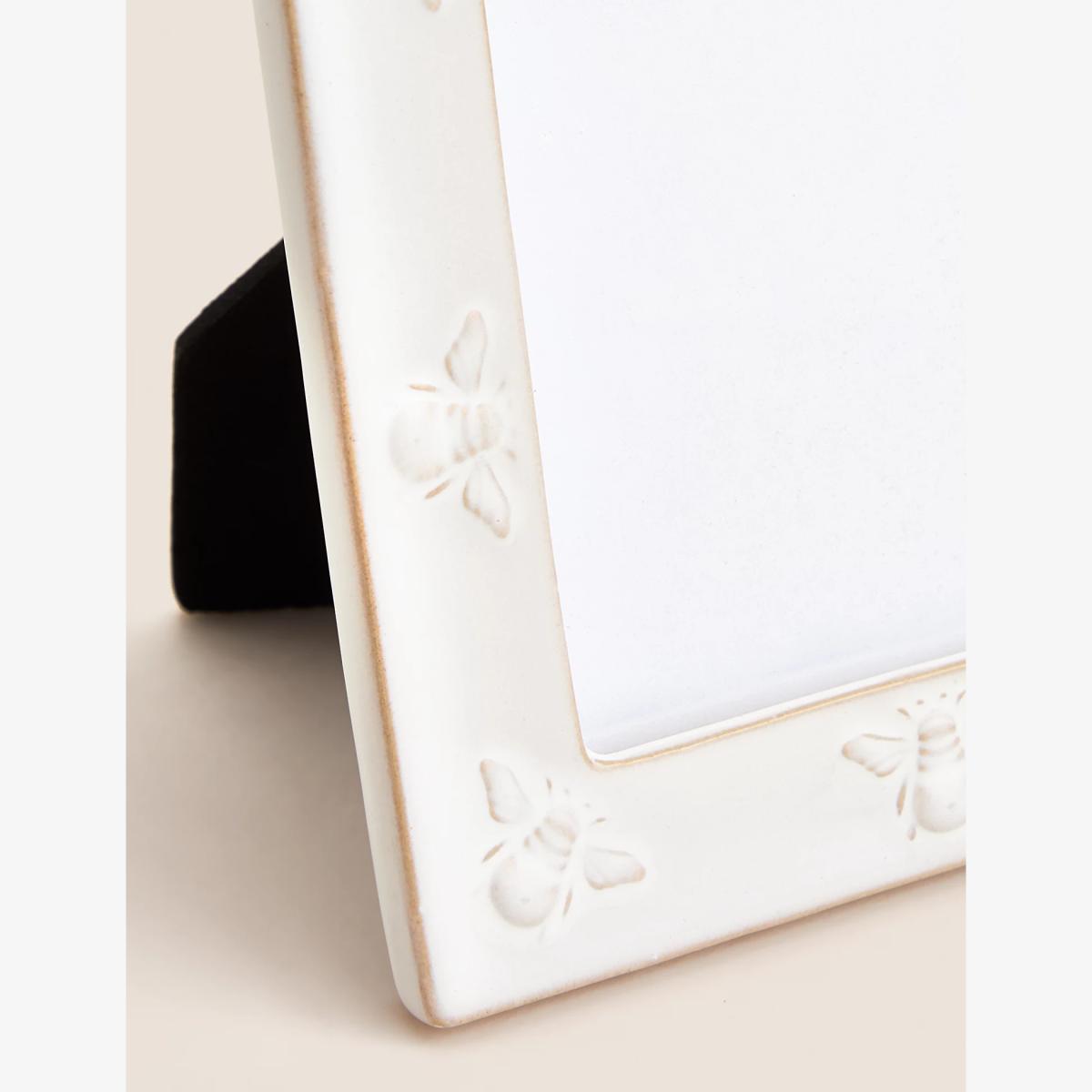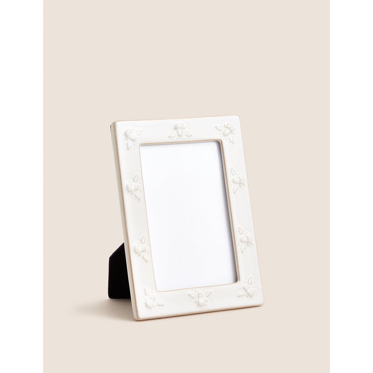 M&S Ceramic Bee Photo Frame 4x6 inch - White, White