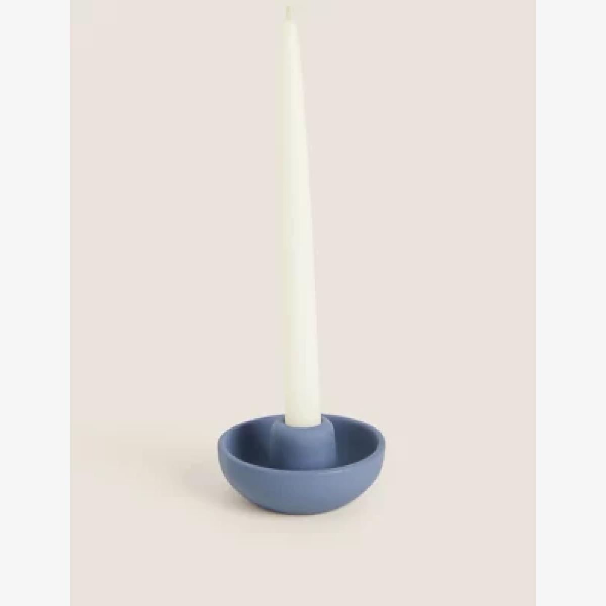 M&S Ceramic Dinner Candle Holder - Blue, Blue