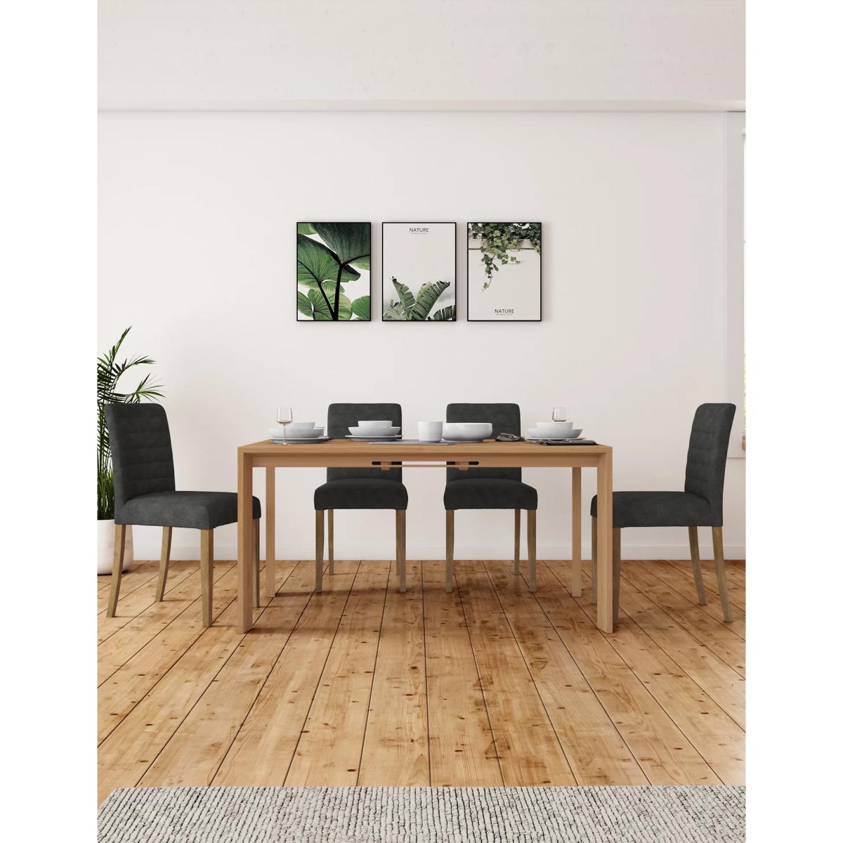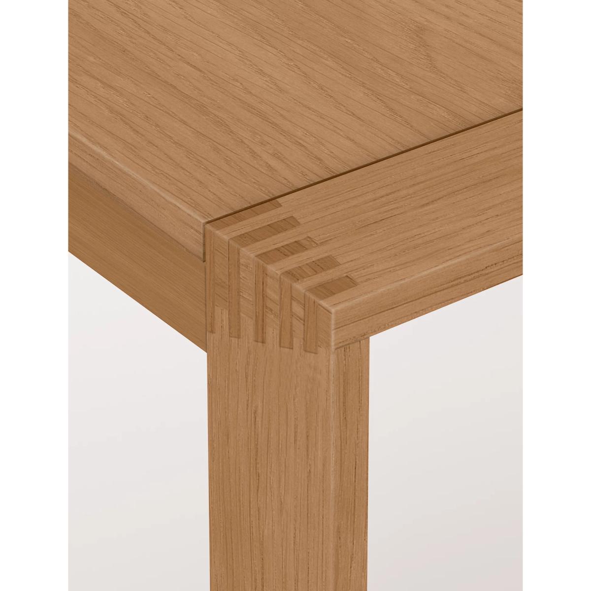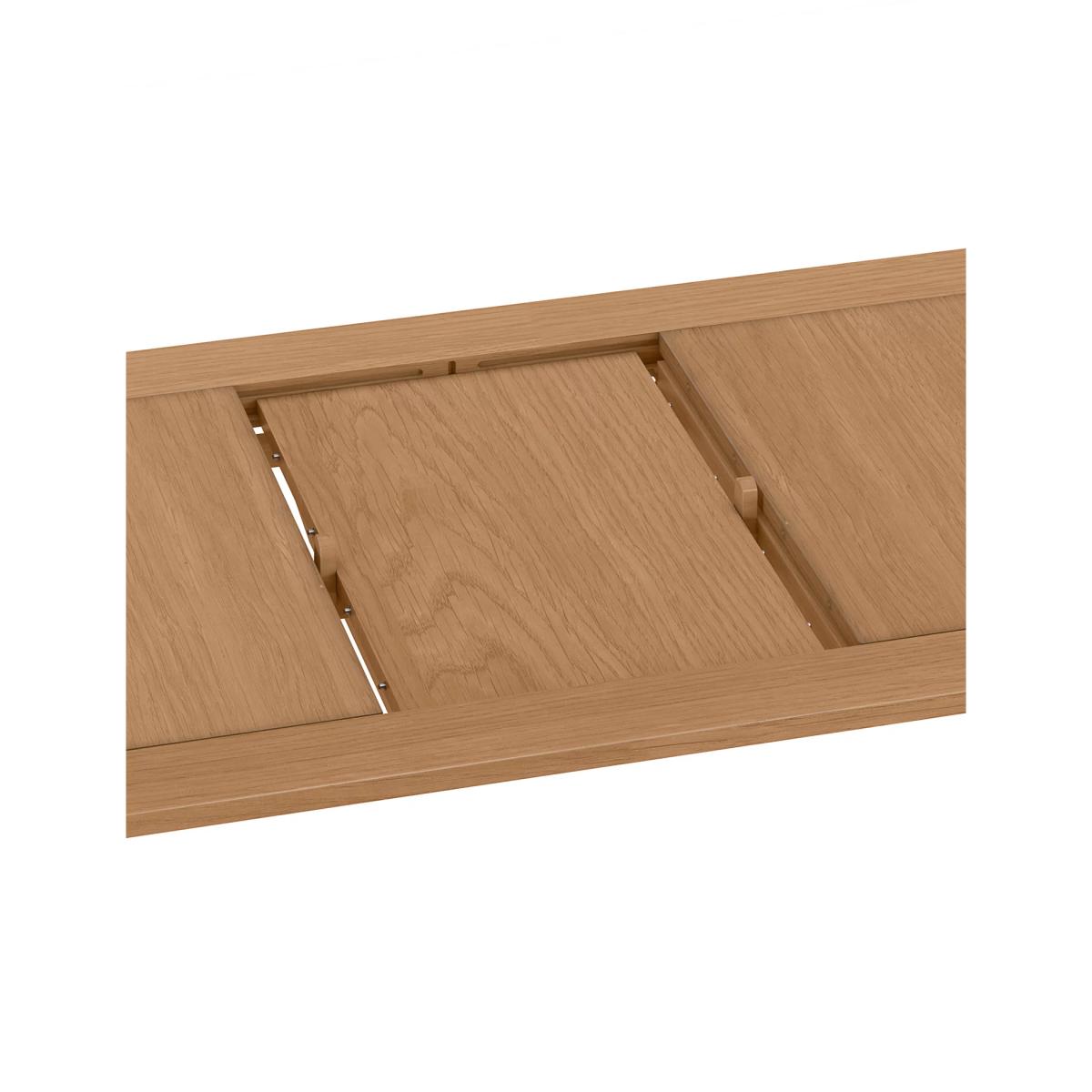 The Chamfer table takes its name from the expert carpentry technique used to create the striking wedge-shaped angles that give this beautiful extending dining table its stunning profile. Added to the elegance of the slim table top and tapered legs, are eye-catching finishing touches such as intricate combed joints on each corner, that are also very strong structurally. Brimming with character, it also features the innovative Roll-Leaf mechanism - this allows for the table’s central extension leaf, hidden entirely in a well, to effortlessly float into position by simply turning two wooden levers once the outer leaves are pulled open. Believed to be the first of its kind, the simplicity of the system is ingenious.
