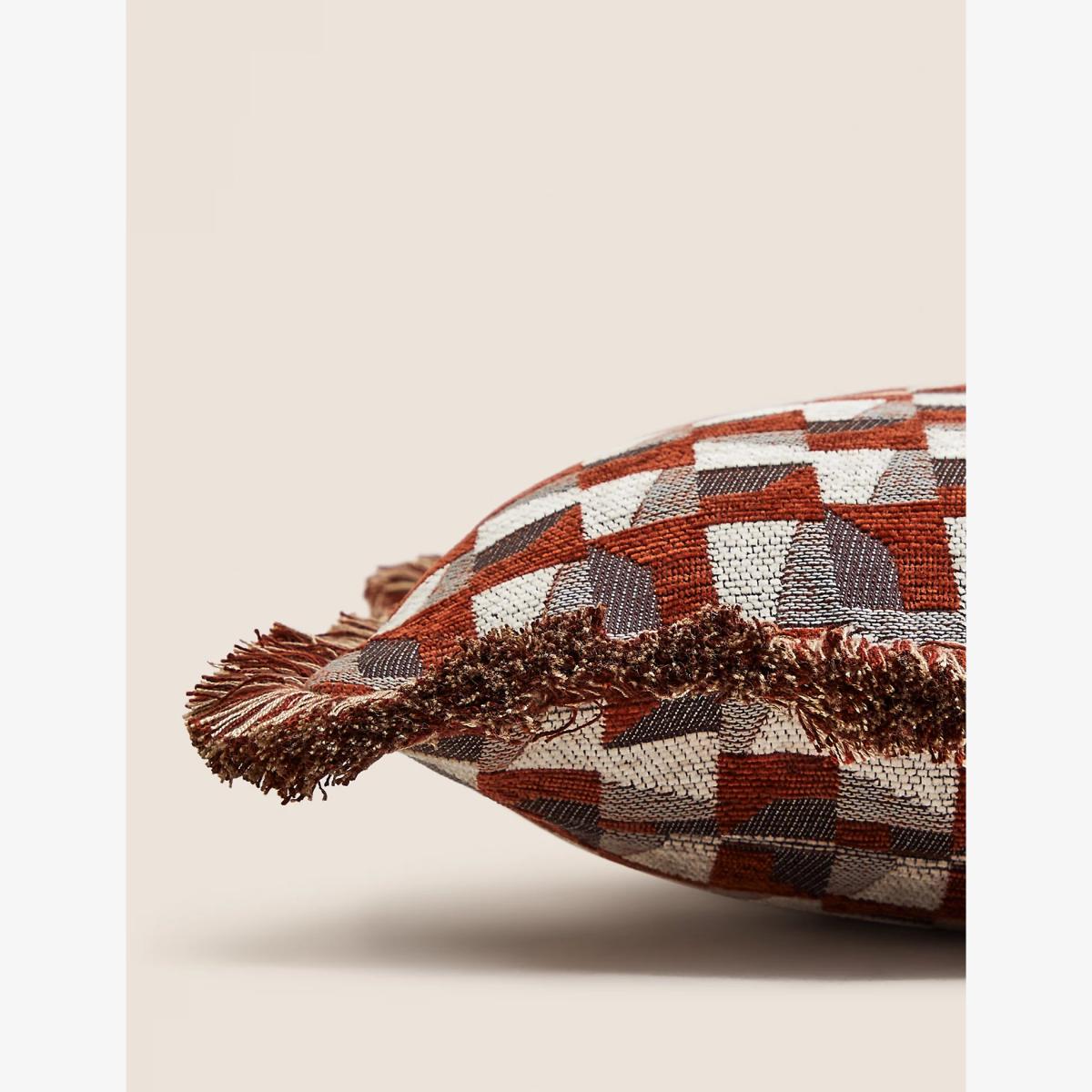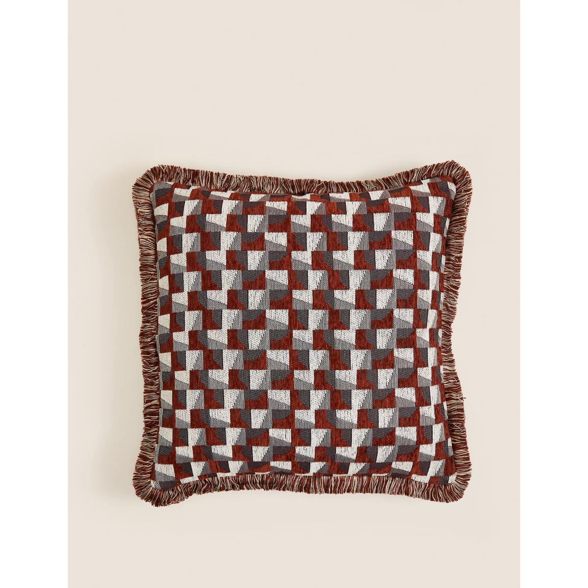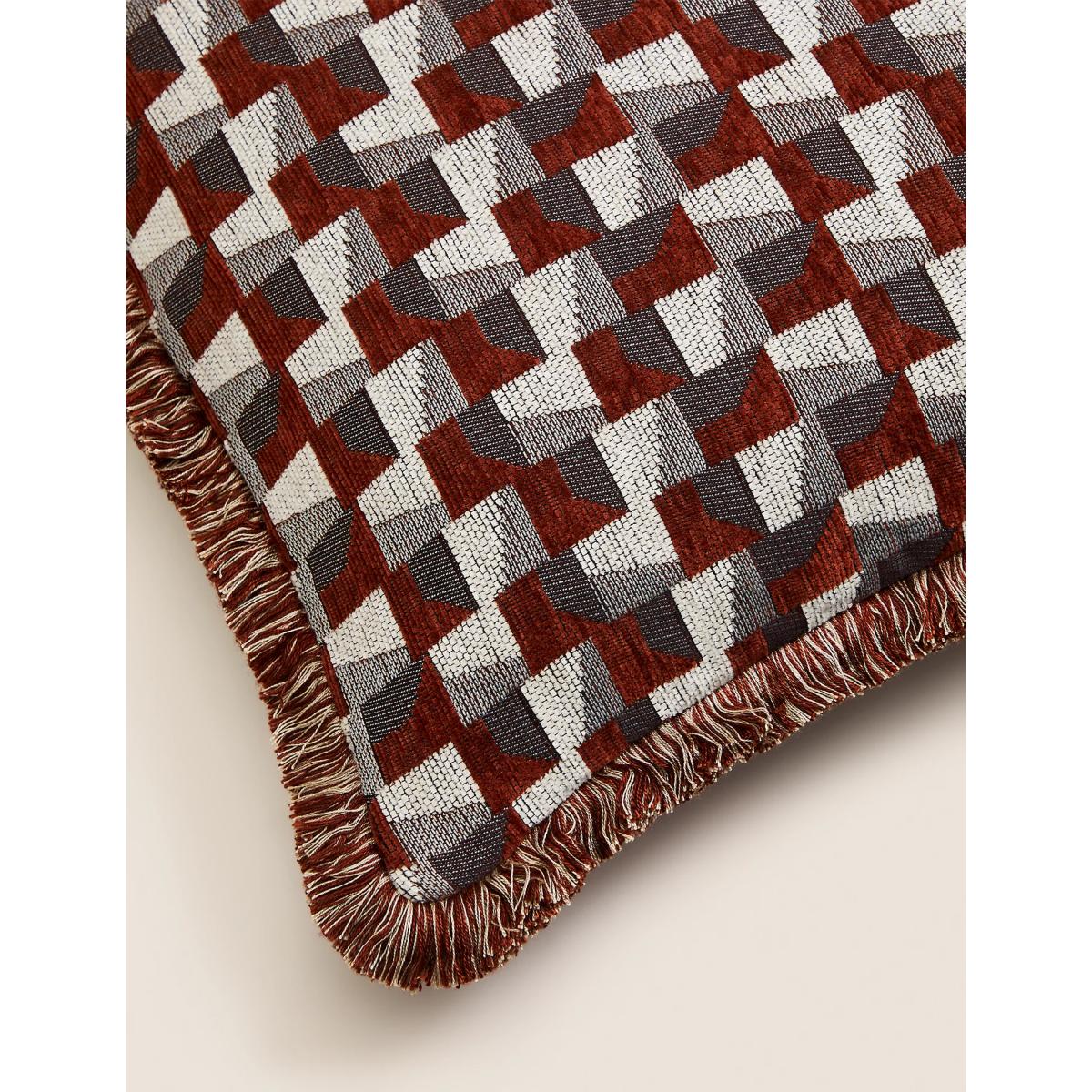 Bring a distinctive look to your soft furnishings with this geometric scatter cushion. It's crafted from soft, durable chenille with a comfy recycled polyester filling. Fringed detailing along each edge adds a premium finish.