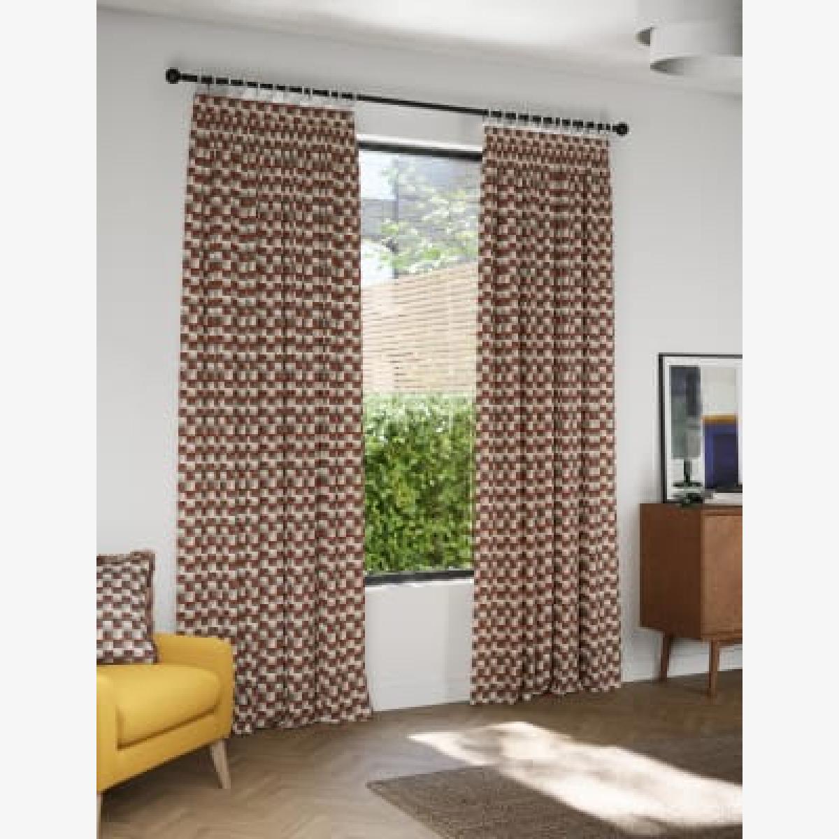 The M&S Chenille Pencil Pleat blackout curtains in red are a versatile choice that instantly adds warmth and depth to a room. I love how the chenille fabric provides a soft, textured finish, making them suitable for both contemporary and more traditional interiors. The red hue is bold enough to make a statement but works equally well as an accent in neutral spaces or layered with patterns for a more eclectic look. Practical styling tips include pairing them with simpler, solid-coloured cushions or accessories to let the curtains stand out or combining with warm-toned soft furnishings for a cosy, inviting vibe. Their blackout feature is ideal for bedrooms or media rooms, providing privacy and light control without compromising on style.