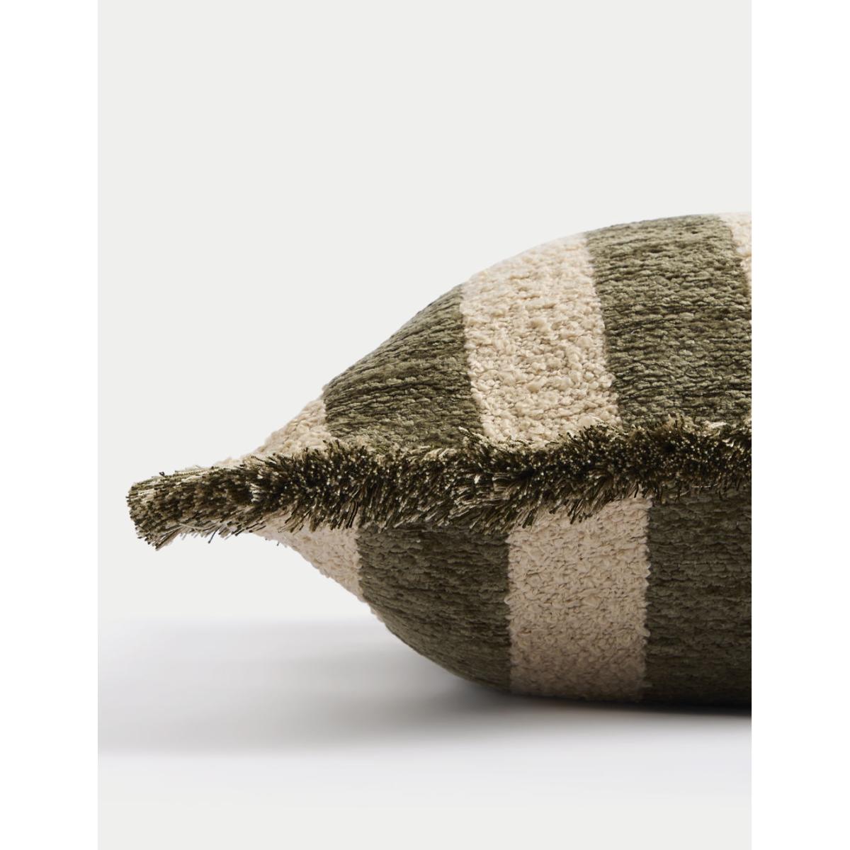 M&S Chenille Striped Fringed Cushion - Green Mix, Green Mix