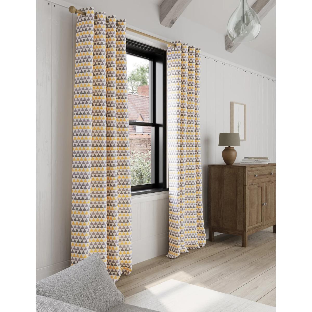 M&S Chenille Triangle Eyelet Curtains - EW90 - Ochre, Ochre